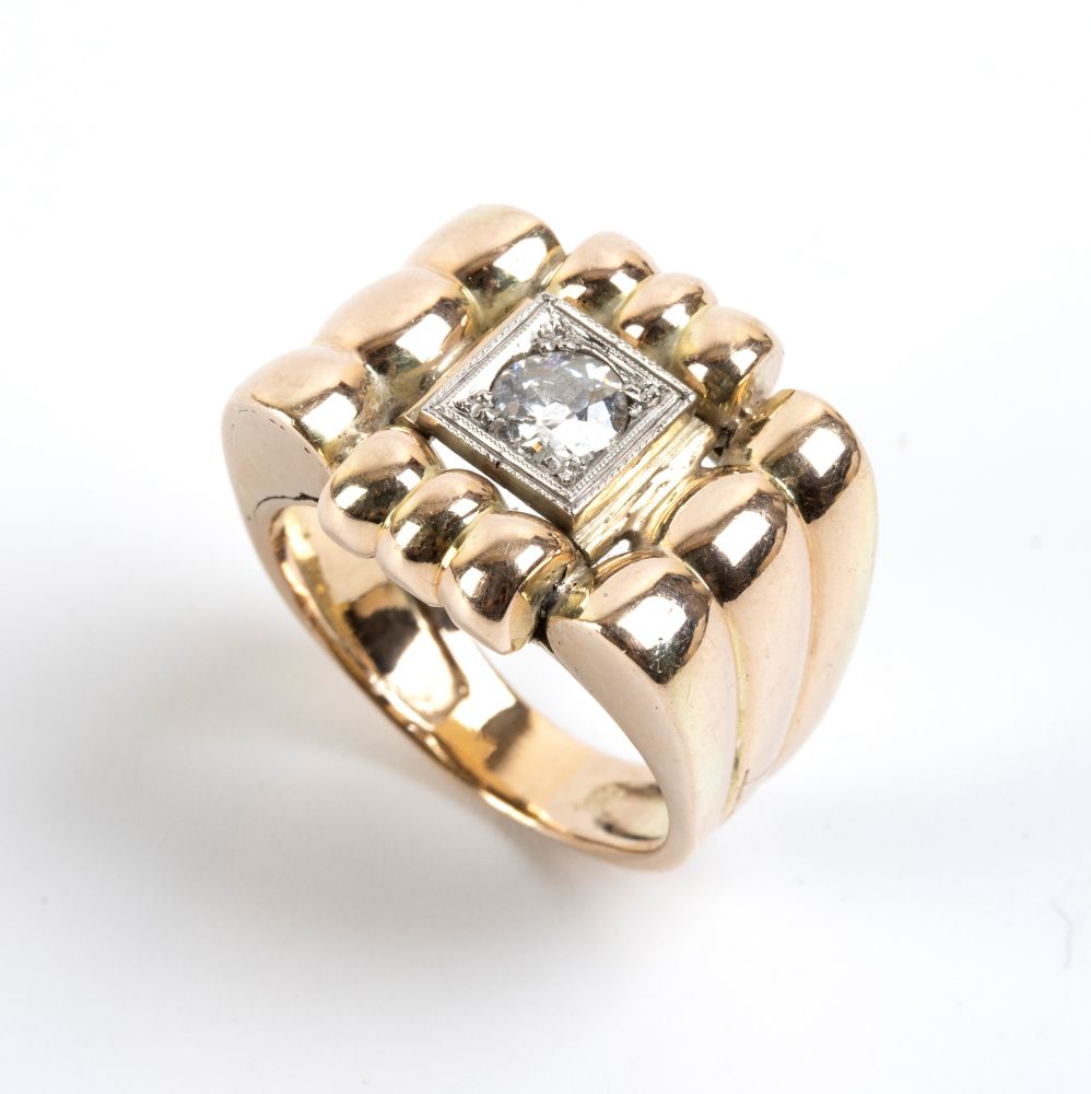 in oro bianco ed oro rosa, incastonato con n. 01 diamante di taglio vecchio europeo, stimato per un peso di circa 0.60 ct.