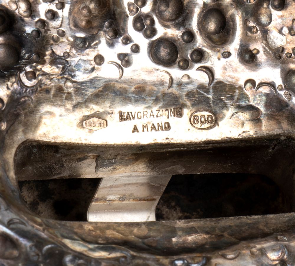 Argento 800/1000, punzonata "103 MI" - "LAVORAZIONE A MANO" - "800".