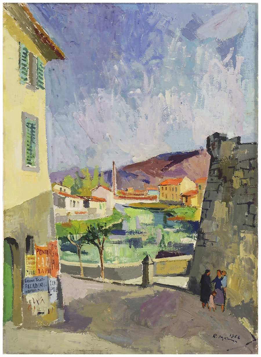 RODOLFO MARMA (1923-1999) Pontassieve 1966 olio su tela, firmato e datato, al verso firmato e datato cm 70x50 PONTASSIEVE VIEW, OIL ON CANVAS