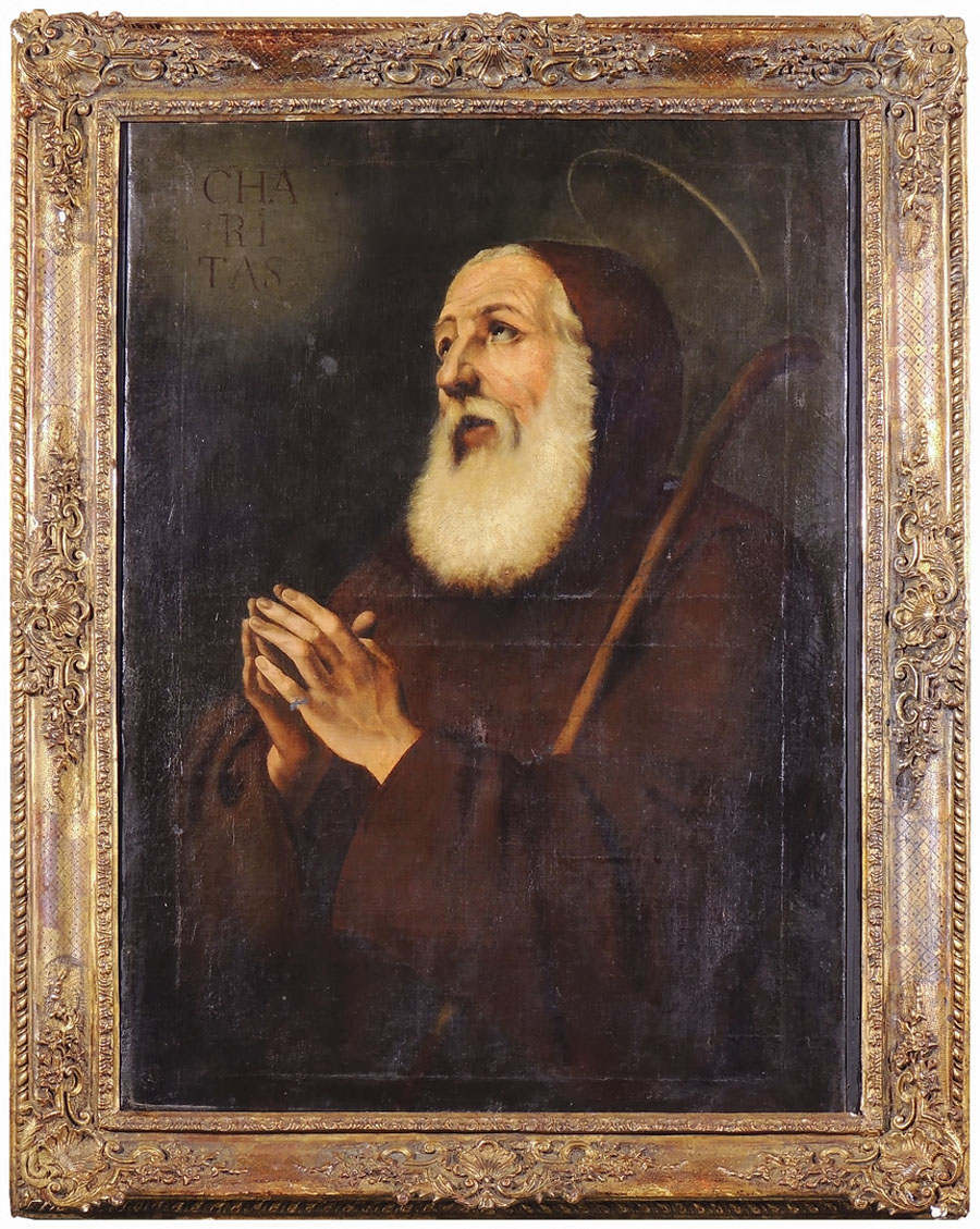SAN FRANCESCO DI PAOLA XIX secolo olio su tela, in cornice difetto cm 93x66 SAINT FRANCIS OF PAOLA, 19TH CENTURY, OIL ON CANVAS