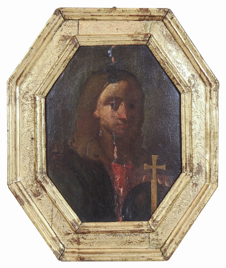 CHRIST, ANTIQUE OIL ON OCTAGONAL PANEL