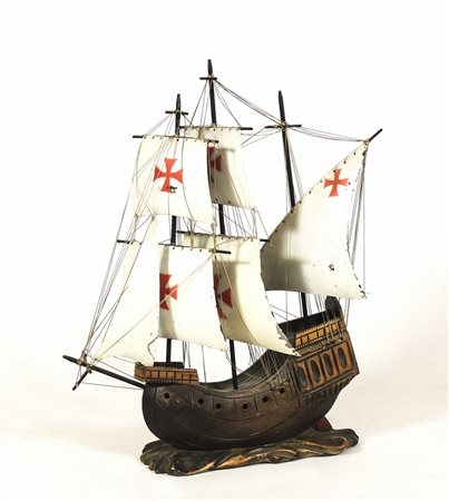 PICCOLO VELIERO IN LEGNO INTAGLIATO E METALLO
