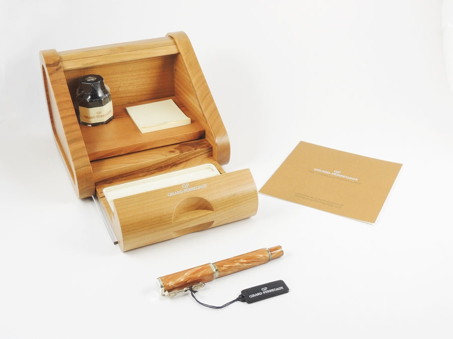 PENNA STILOGRAFICA IN CELLULOIDE E ARGENTO STERLING The Tourbillon Fountain Pen Girard-Perregaux pennino in oro 18 Kt entro cofanetto originale in legno, corredata di garanzia, es 0225/1791 GIRARD-PERREGAUX CELLULOID FOUNTAIN PEN WITH BOX AND WARRANTY