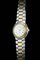 Cassa in acciaio e dorata di forma con fondello a vite. Quadrante bianco con indici geometrici applicati e numeri romani serigrafati. Datario al 6. Bracciale integrato in acciaio e dorato con chiusura clasp.