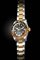 Cassa in acciaio con fondello a vite e lunetta girevole. Quadrante nero con indici geometrici luminescenti applicati e datario al 3. Bracciale in acciaio e oro integrato con chiusura clasp.
