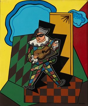 ORIANI PIPPO Torino 1909 - 1972 "Arlecchino" 1965/70 Olio su tela 60x50 cm Firma in basso a destra e al retro Autentica di Gabriel Oriani su fotografia Opera registrata nell'Archivio delle Opere di Pippo Oriani con n.FPO/MV 861 Pubblicata sul Catalogo Generale delle Opere di Pippo Oriani, vol.1 a pg.325 Oil on canvas Signed lower right and the back