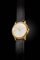 Cassa oro con fondello a vite. Quadrante argento con indici geometrici applicati.