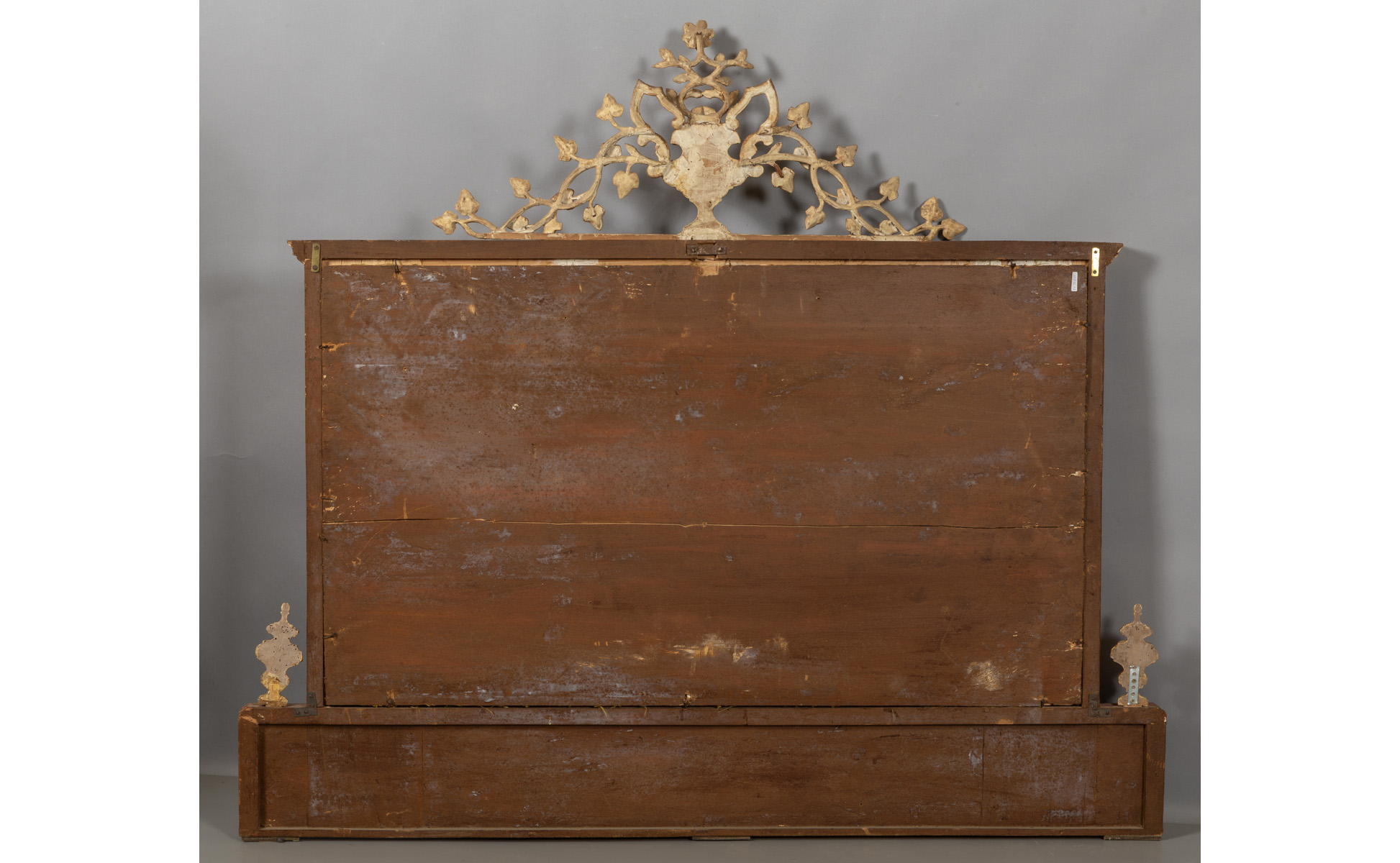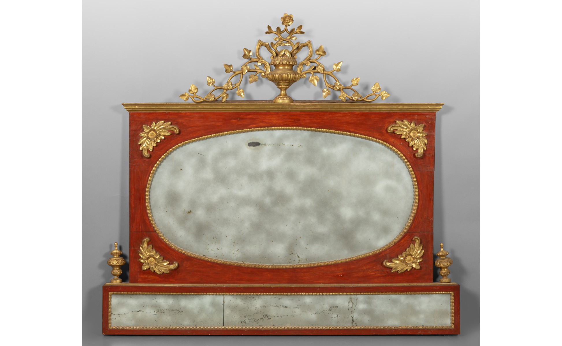 Caminiera Luig XVI in legno intagliato e laccato rosso con decorazioni in oro Toscana sec.XVIII