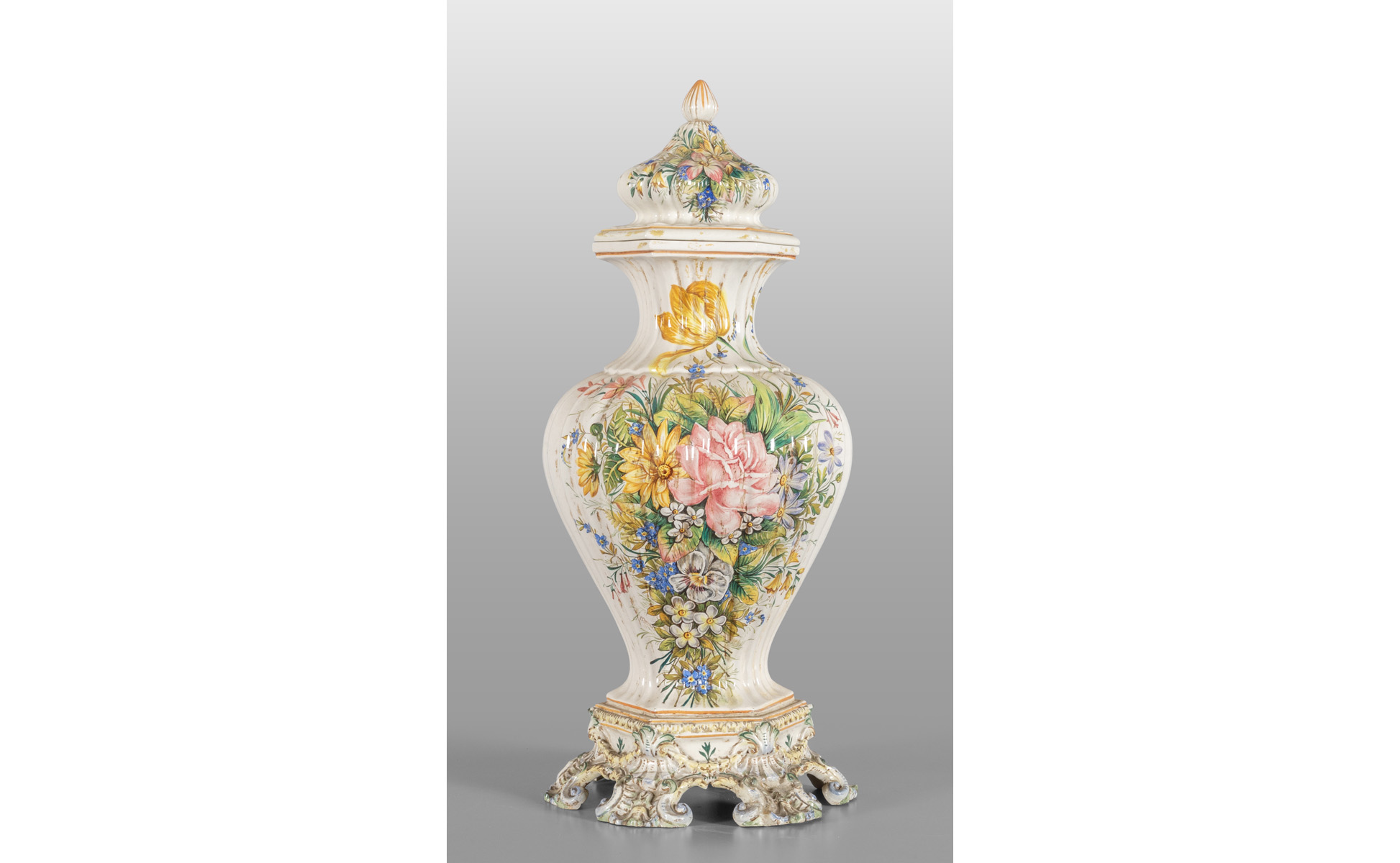 Vaso con coperchio in maiolica Bassano inizi sec.XX