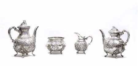 SERVITO DA TE E CAFFÈ IN ARGENTO Germania, fine del XIX secolo coperchi con...