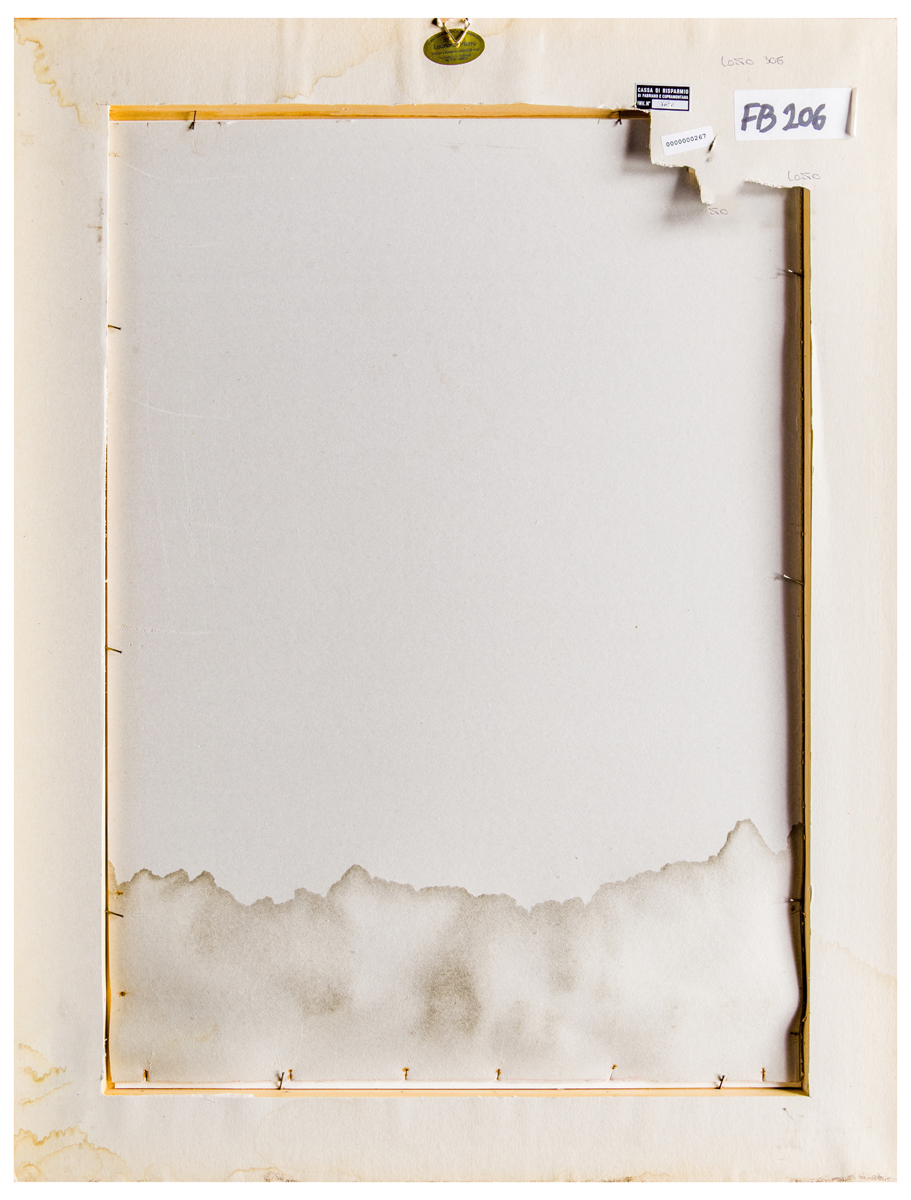 Elementi distintivi: sul verso, etichetta Cassa di Risparmio di Fabriano e Cupramontana con riferimenti di inventario ed analoga etichetta anonima; inoltre, etichetta di corniceria