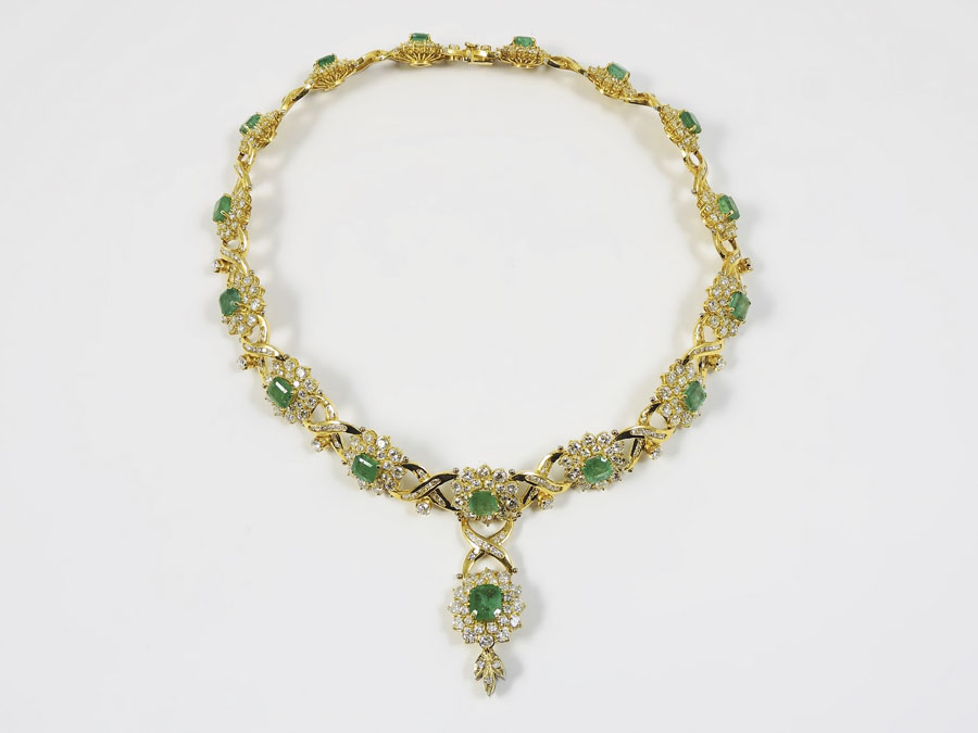 COLLIER IN ORO BIANCO E GIALLO, DIAMANTI E SMERALDI realizzato come una...