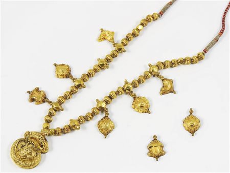 COLLANA CON ELEMENTI IN ORO GIALLO India corredata di due pendenti varie leghe dell'oro gr 33,3 (3) INDIAN YELLOW GOLD NECKLACE