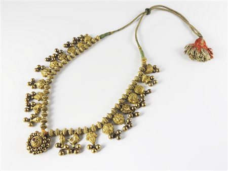 COLLANA IN ORO GIALLO India realizzata con piastrine sagomate sbalzate varie leghe dell'oro gr 47 INDIAN YELLOW GOLD NECKLACE