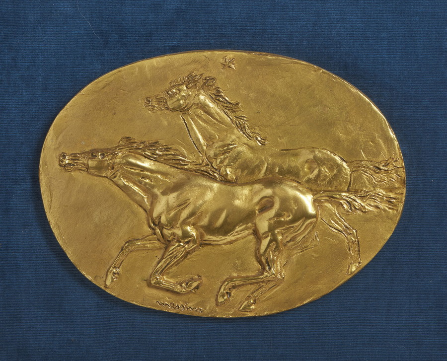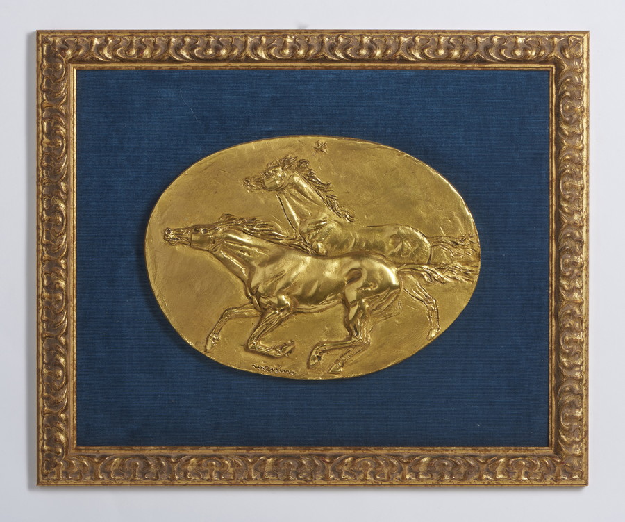 MESSINA FRANCESCO (1900 - 1995) CAVALLI AL GALOPPO . bassorilievo in bronzo. Cm 34,50 x 25,00. firma incisa alla base.