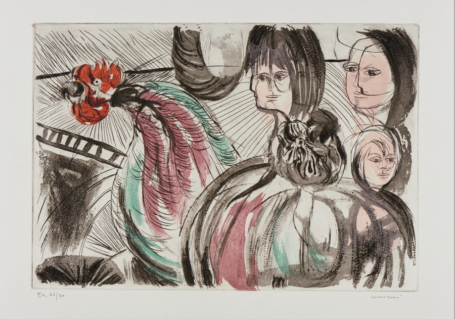 CASSINARI BRUNO (1912 - 1992) IL CANTO DEL GALLO . Acquaforte e acquatinta. Cm 54,00 x 40,00. firma e tiratura a matita, es. 44/70