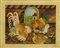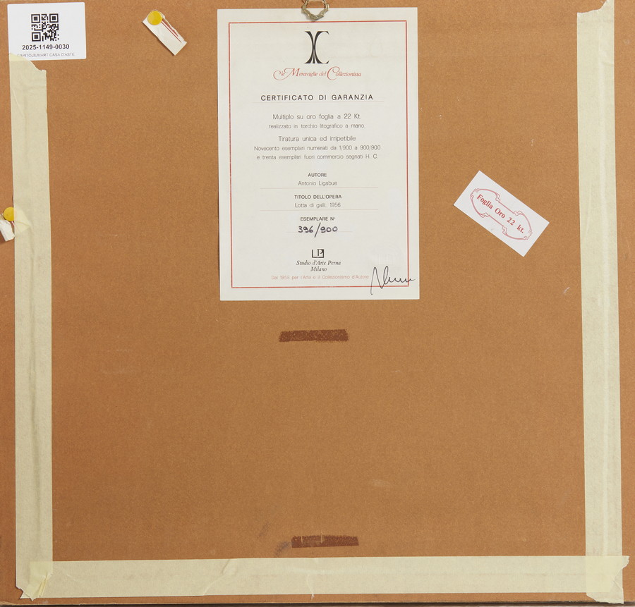 LIGABUE ANTONIO (1899 - 1965) SENZA TITOLO (LOTTA DI GALLI). Litografia su foglia d'oro 22kt.. Cm 15,00 x 12,00. esemplare 396/900