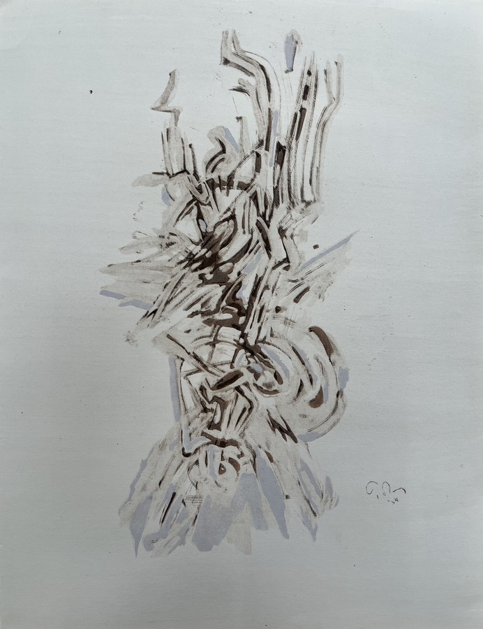 TOBEY MARK (1890 - 1976) PEINTURE, 1959. 1959. Pochoir su carta. Cm 24,20 x 31,50. Firma e anno in basso a destra a stampa. 1954. Opera proveniente da "XXe siècle. Psychologie de la technique. N° 12. Maggio-giugno 1959". Edizione totale: 1500 esemplari. Editore: San Lazzaro, Paris, 1959. Realizzate a mano da Daniel Jacomet, Paris, 1958.