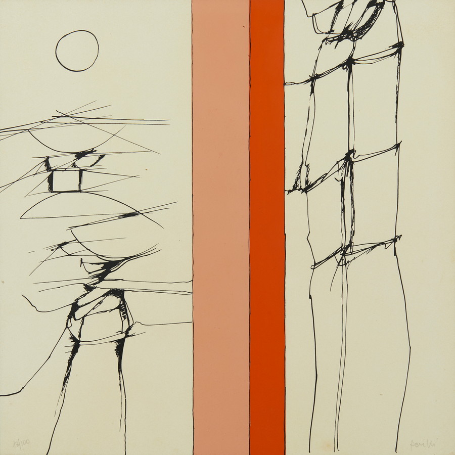 PERILLI ACHILLE (1927 - 2021) SENZA TITOLO. litografia. Cm 40,00 x 40,00. firma e tiratura a matita, es. 13/100. Cornice presente