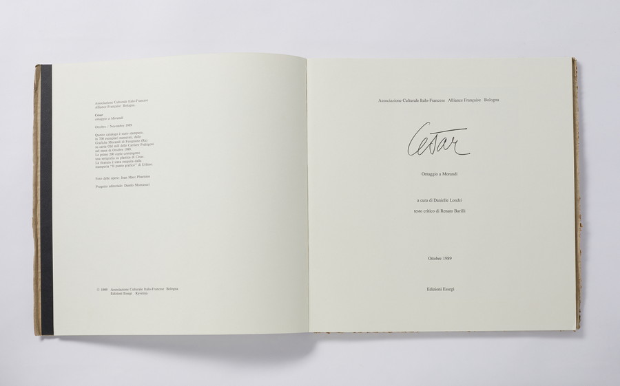 L'opera è accompagnata dal volume a cura di D. Londei, Cesar. Omaggio a Morandi, Ravenna 1989, stampato in 700 esemplari numerati dalle grafiche Morandi su carta Old Mill delle cartiere Fedrigoni. Le prime 200 copie contengono una serigrafia su plastica di Cesar