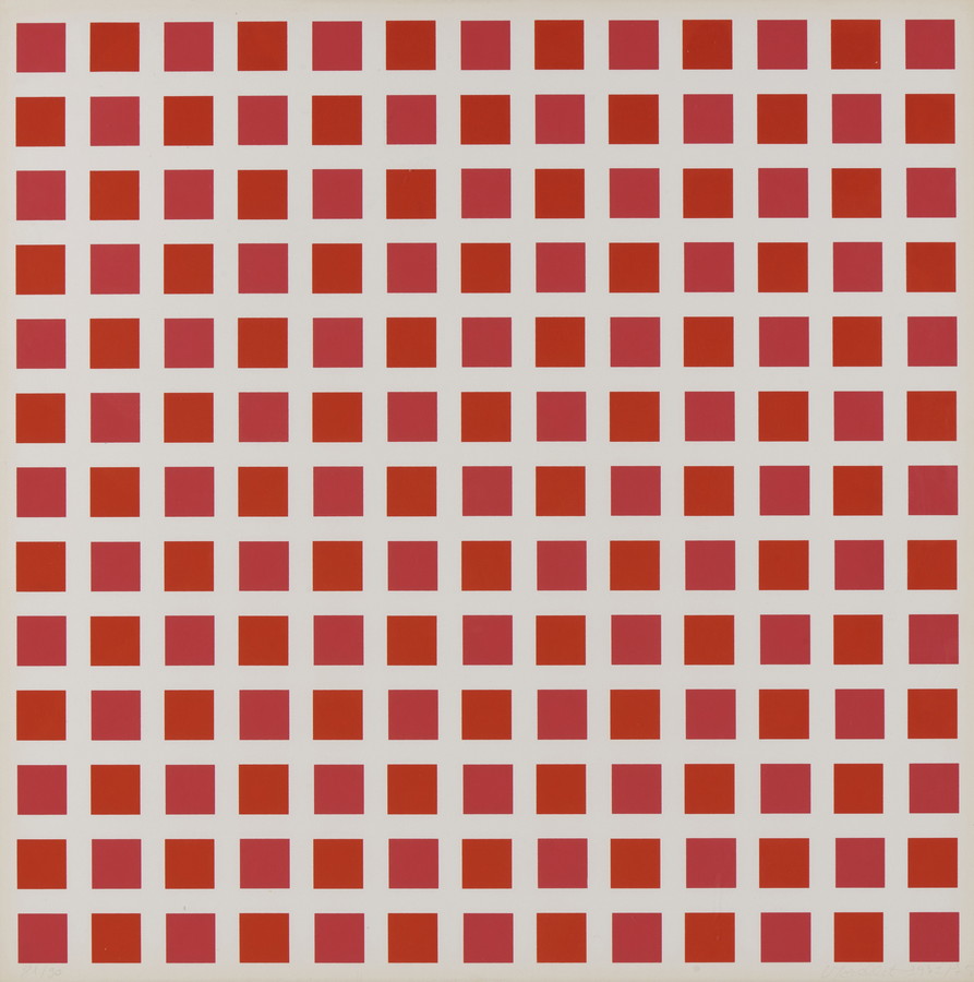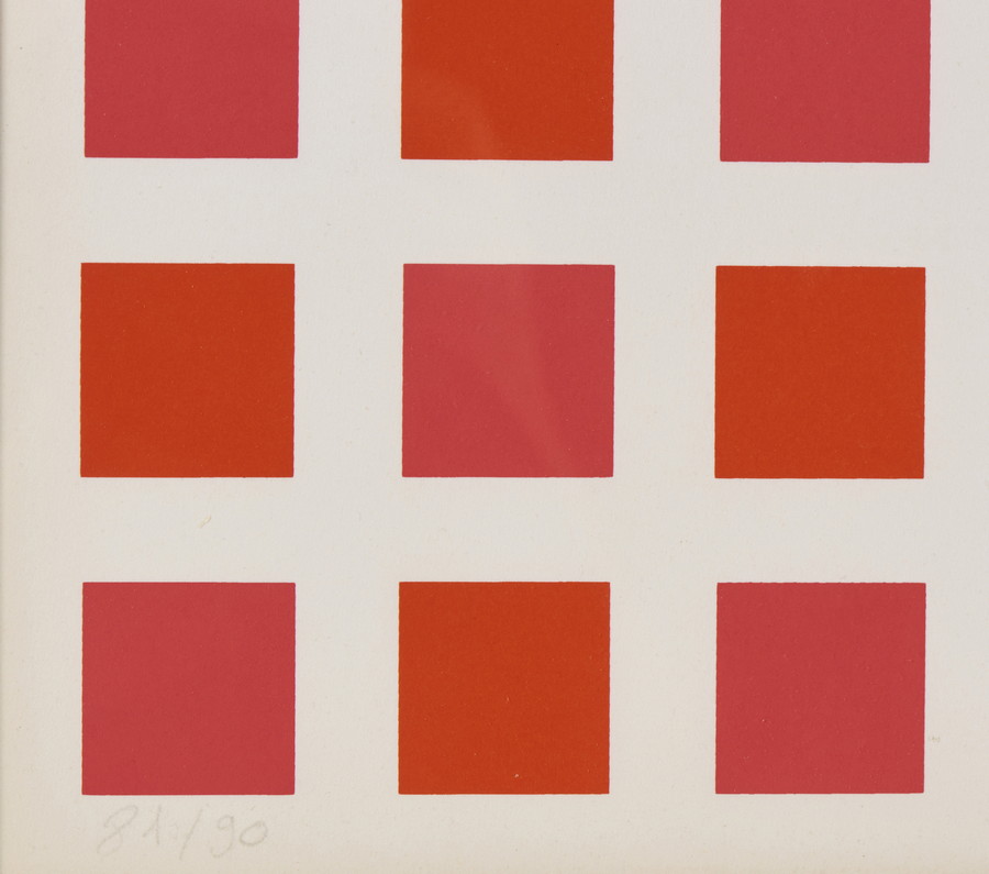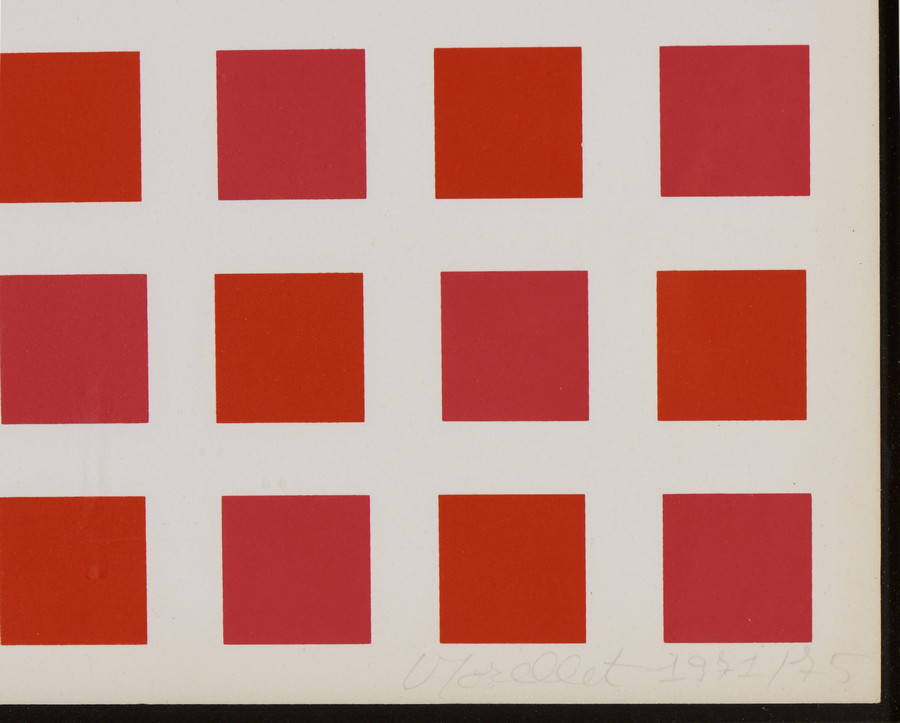 MORELLET FRANCOIS (n. 1926) 1 CARRE' ROUGE 1 CARRE' ORANGE. serigrafia a colori. Cm 69,00 x 69,00. firma, data e tiratura a matita, es. 81/90