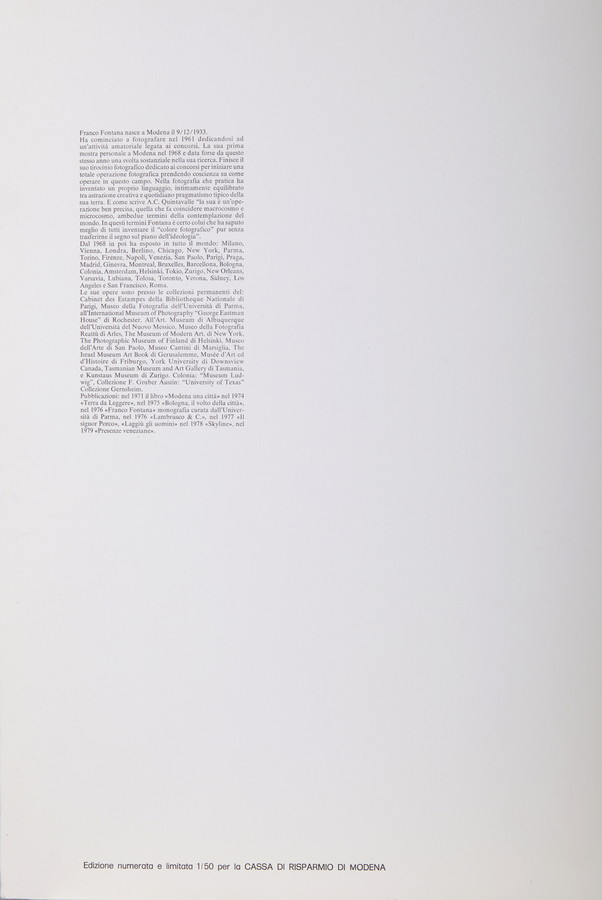 FONTANA FRANCO (n. 1933) SENZA TITOLO. fotografia. Cm 21,50 x 30,00. firma e e tiratura a matita, es. 40/50