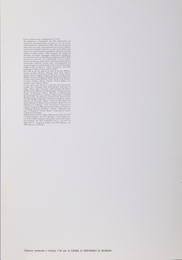 FONTANA FRANCO (n. 1933) SENZA TITOLO. fotografia. Cm 30,00 x 23,50. firma e tiratura a matita , es. 17/50