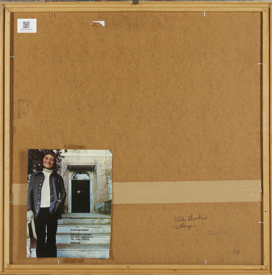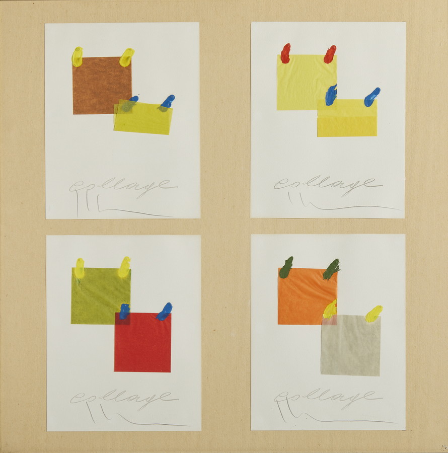 MONDINO ALDO (1938 - 2005) COLLAGE (LOTTO COMPOSTO DA N. 4 FOGLI). Litografia e collage. Cm 70,00 x 70,00. firma a matita, titolo in lastra