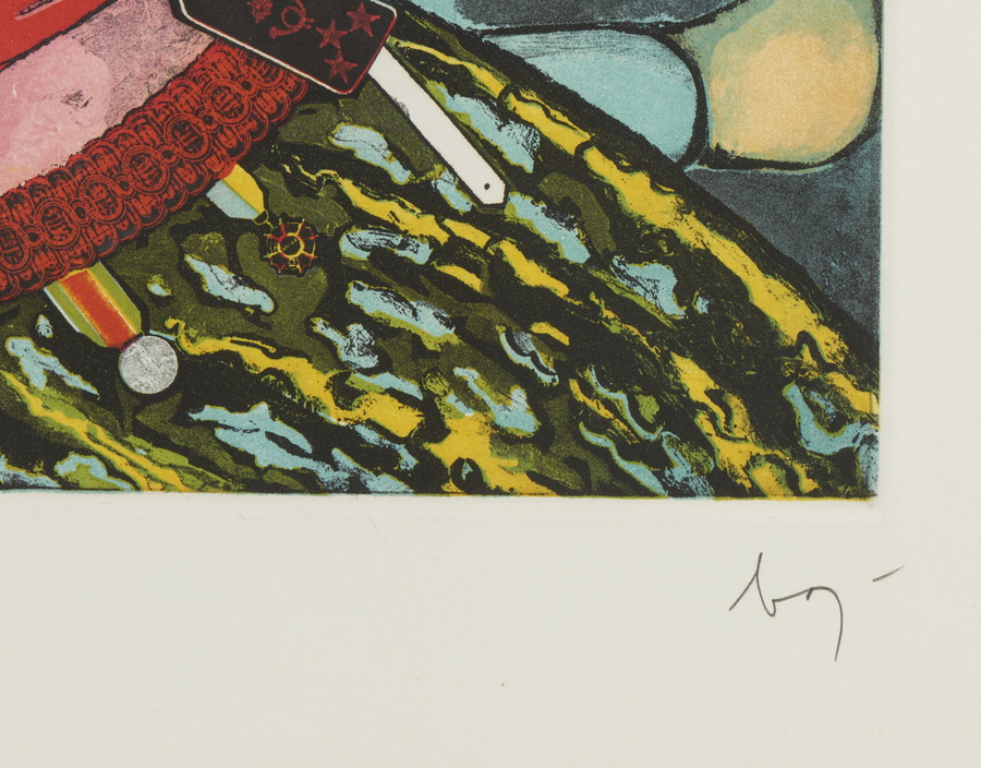 BAJ ENRICO (1924 - 2003) GENERALE E I SUOI FANTASMI . Acquaforte e Collage. Cm 60,00 x 79,50. firma e tiratura a matita, es. PA