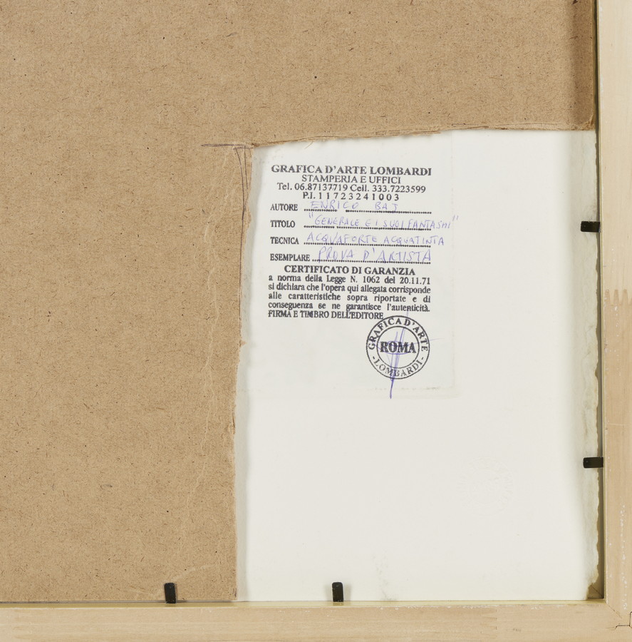 sul retro: certificato di garanzia a cura di Grafica d'Arte Lombardi, Roma