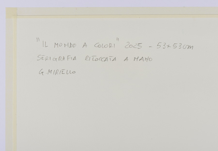 MIRELLO GIUSEPPE (n. 1959) IL MONDO A COLORI . 2025. Serigrafia ritoccata a mano. Cm 53,00 x 53,00. firma e data