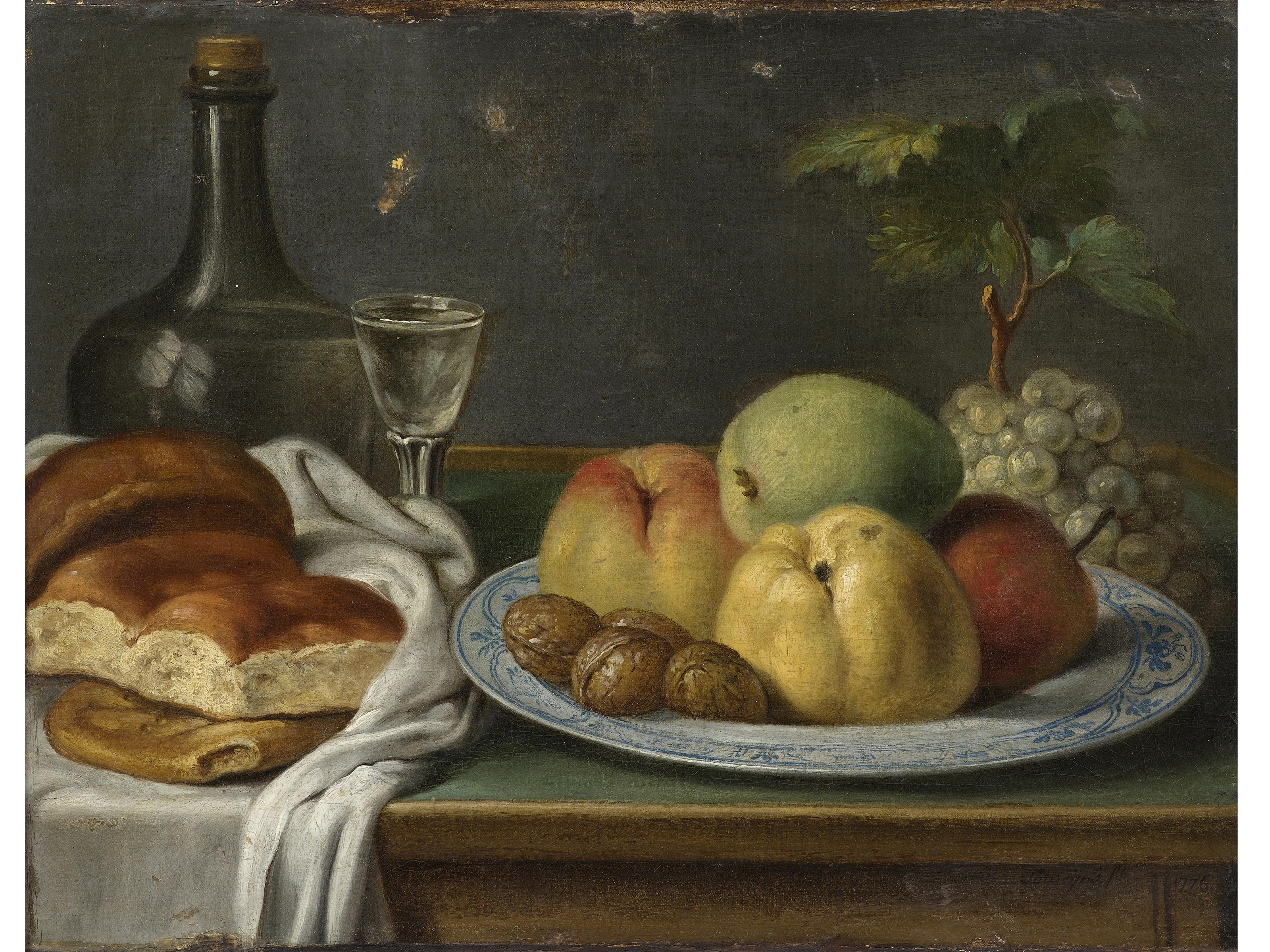 Firma illeggibile (XVIII secolo) Natura morta Olio su tela Firmato e datato 1776 32x42 cm
