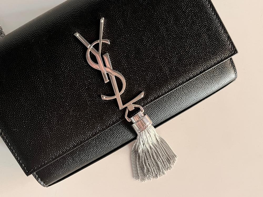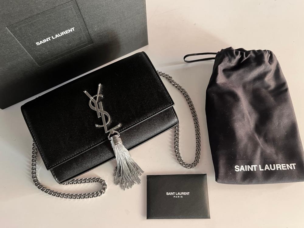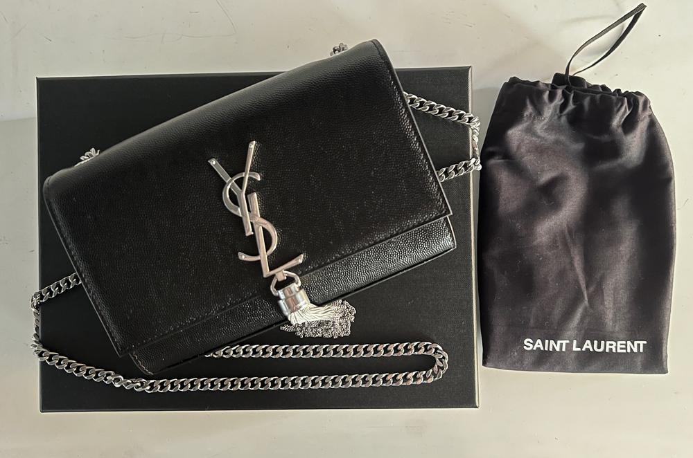 Saint Laurent Kate Small Tassel YSL Wallet on Chain in Grained Leather