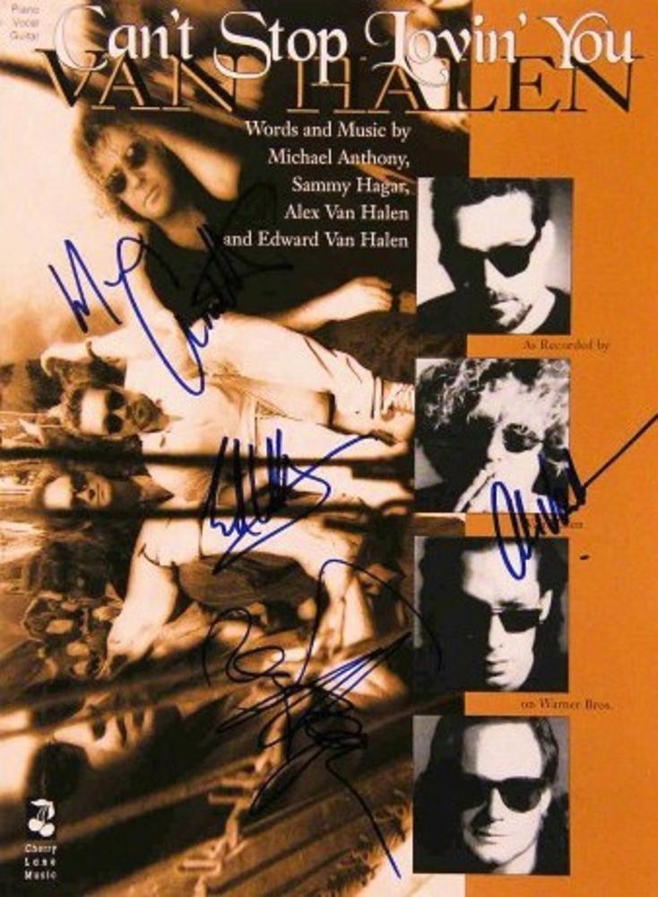 Can't Stop Lovin' You - 1995 sheet music autographed by Sammy Hagar, Alex and Eddie Van Halen, and Michael Anthony.