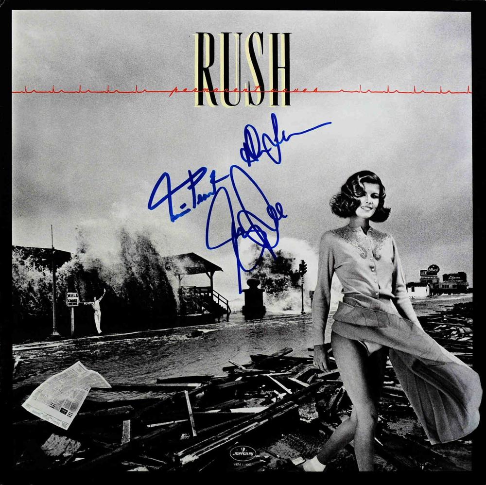 Rush 1982 Permanent Waves album. Signed: Neil Peart, Geddy Lee, and Alex Lifeson