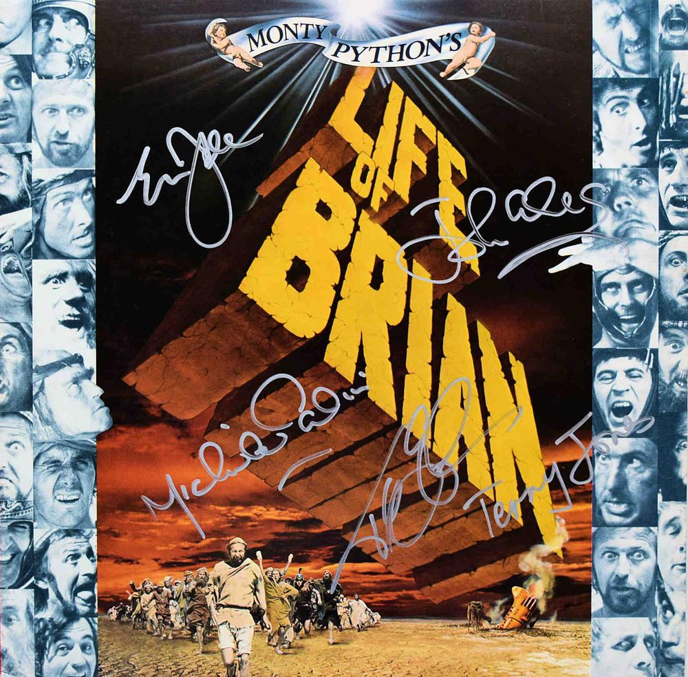 Monty Python 1975 The Life of Brian signed album autographed by John Clease, Terry Jones, Michael Palin, Graham Chapman & Terry Gilliam