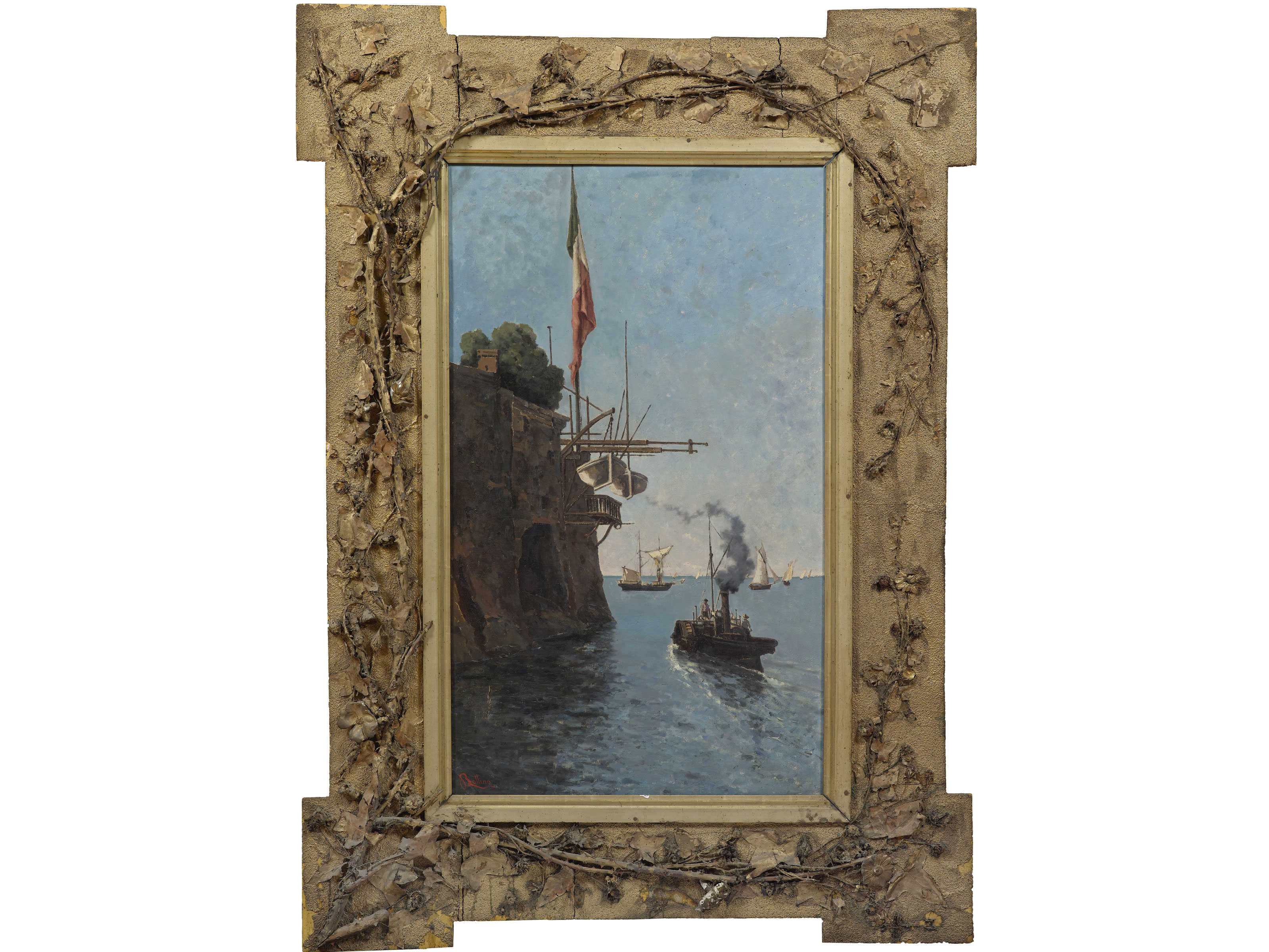 Emanuele Bottino (XIX secolo) Marina Olio su tela Misure 55x91 cm Pittore attivo a Genova dal 1880 al 1885