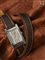 Boîtier rectangulaire acier. Cadran fond silver. Mouvement quartz. Boîtier acier fond vissé (4 vis), signé et numéroté. Dim.: 29 x 18mm.