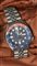 Montre de plongée en acier. Cadran fond noir, index géométrique, aiguilles luminescentes, seconde centrale, guichet date et jour à 3h, lunette bicolore tournante unidirectionnelle. Mouvement mécanique à remontage automatique. Diam.: 45mm. Boîtier fond vissé, numéroté et signé. Bracelet acier, boucle déployante signée.