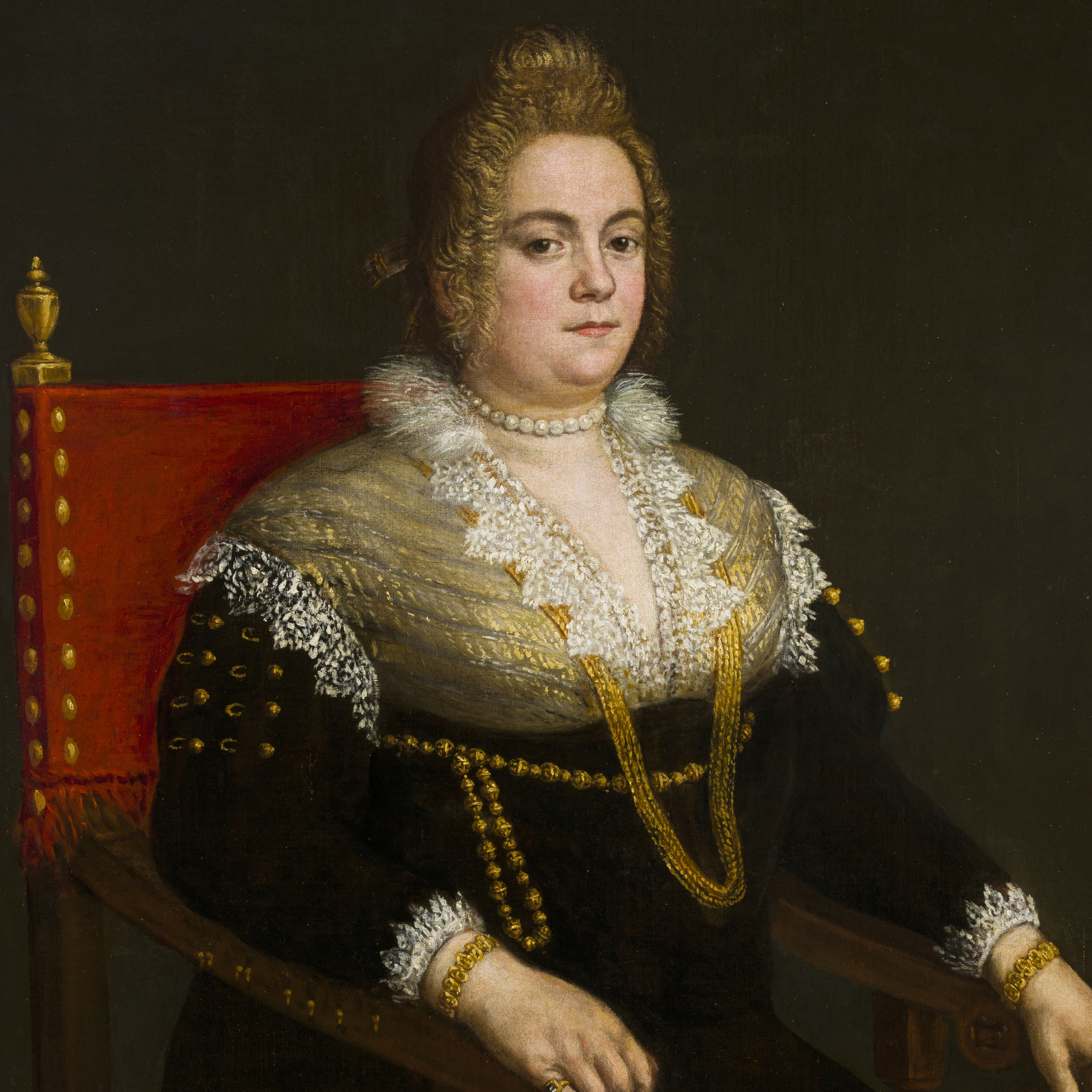 An excellent and unequivocal comparison can be found in Ritratto di donna con bambine (Portrait of a Woman with Children) by Leandro da Ponte, preserved at the Accademia di Carrara in Bergamo.