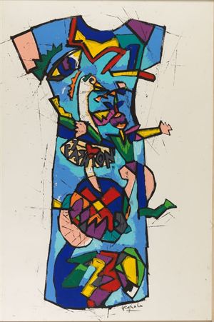 NESPOLO UGO Mosso Santa Maria 1941 I love fashion anni'70 Olio su carta 150x100 cm Firma in basso al centro Autentica dell'artista su fotografia Oil on paper Signature at the bottom in the middle center