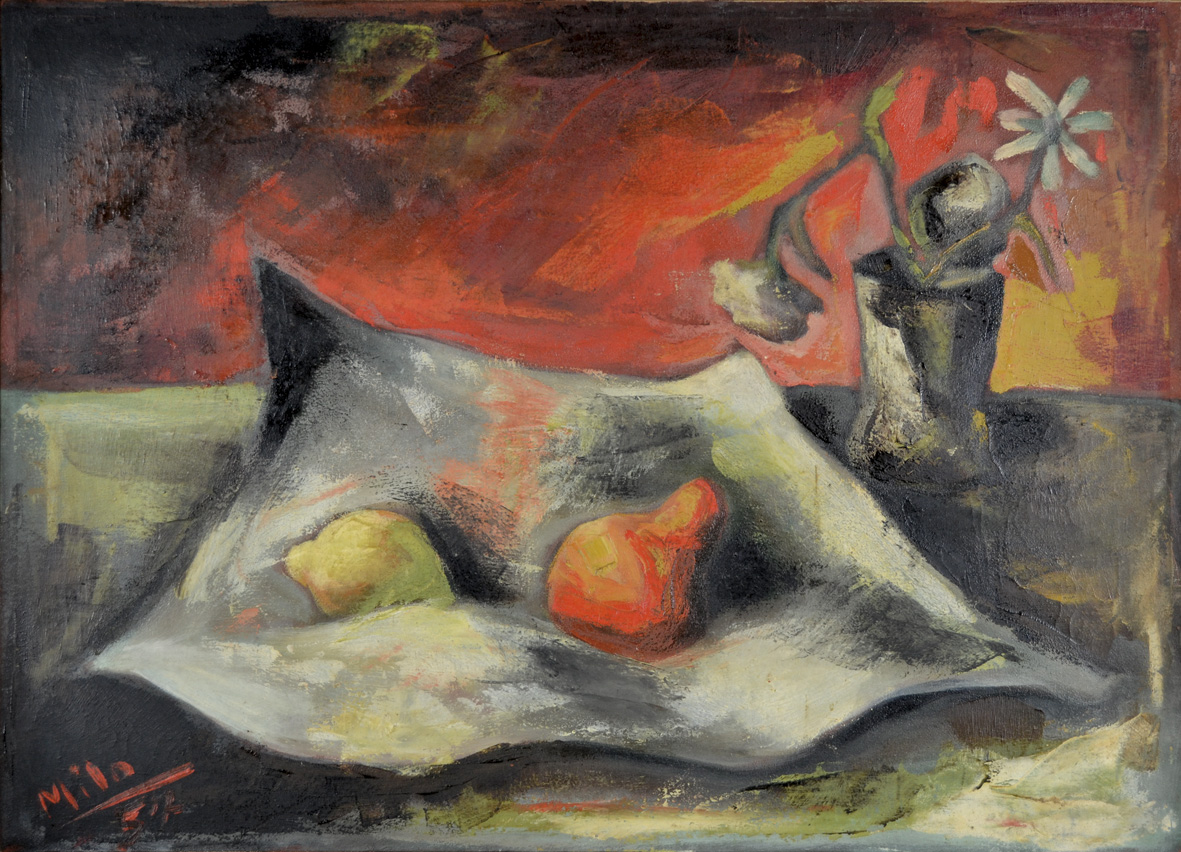 BORTOLUZZI MILLO JR. Dolo (Ve) 1938 Natura morta 1957 olio su tela 50x70 firma e data in basso a sinistra