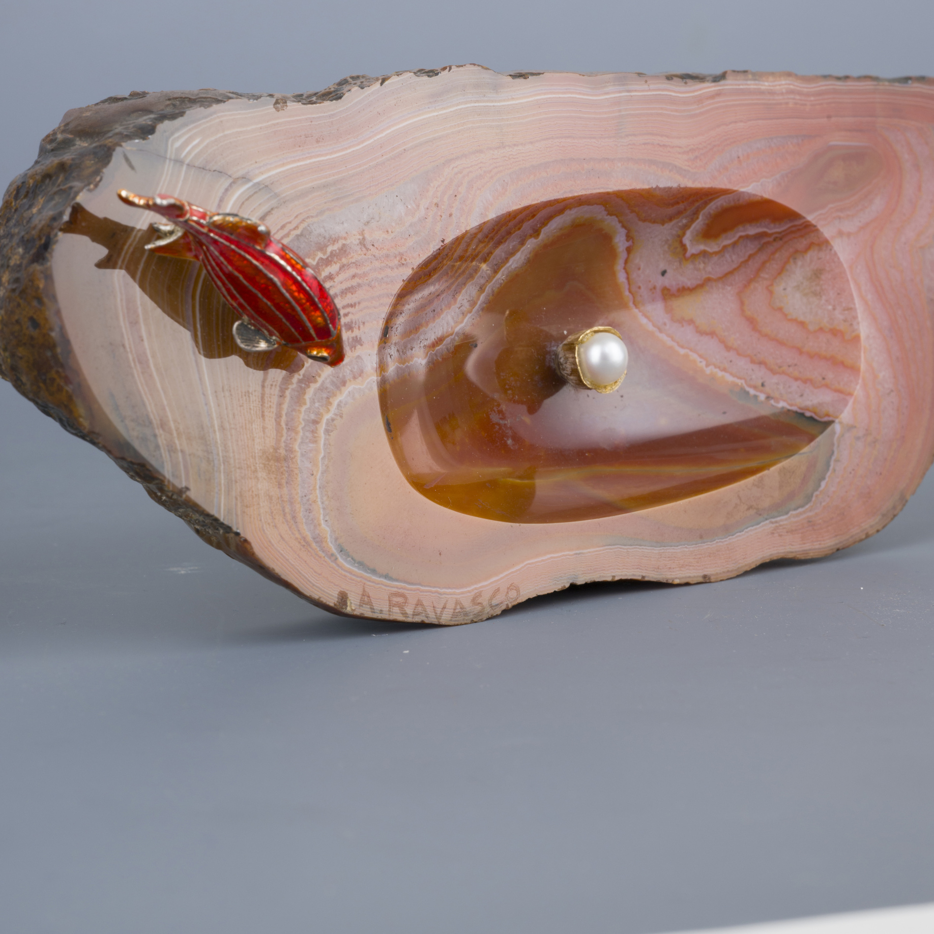 Corpo in pietra dura con pesce in argento e smalto traslucido