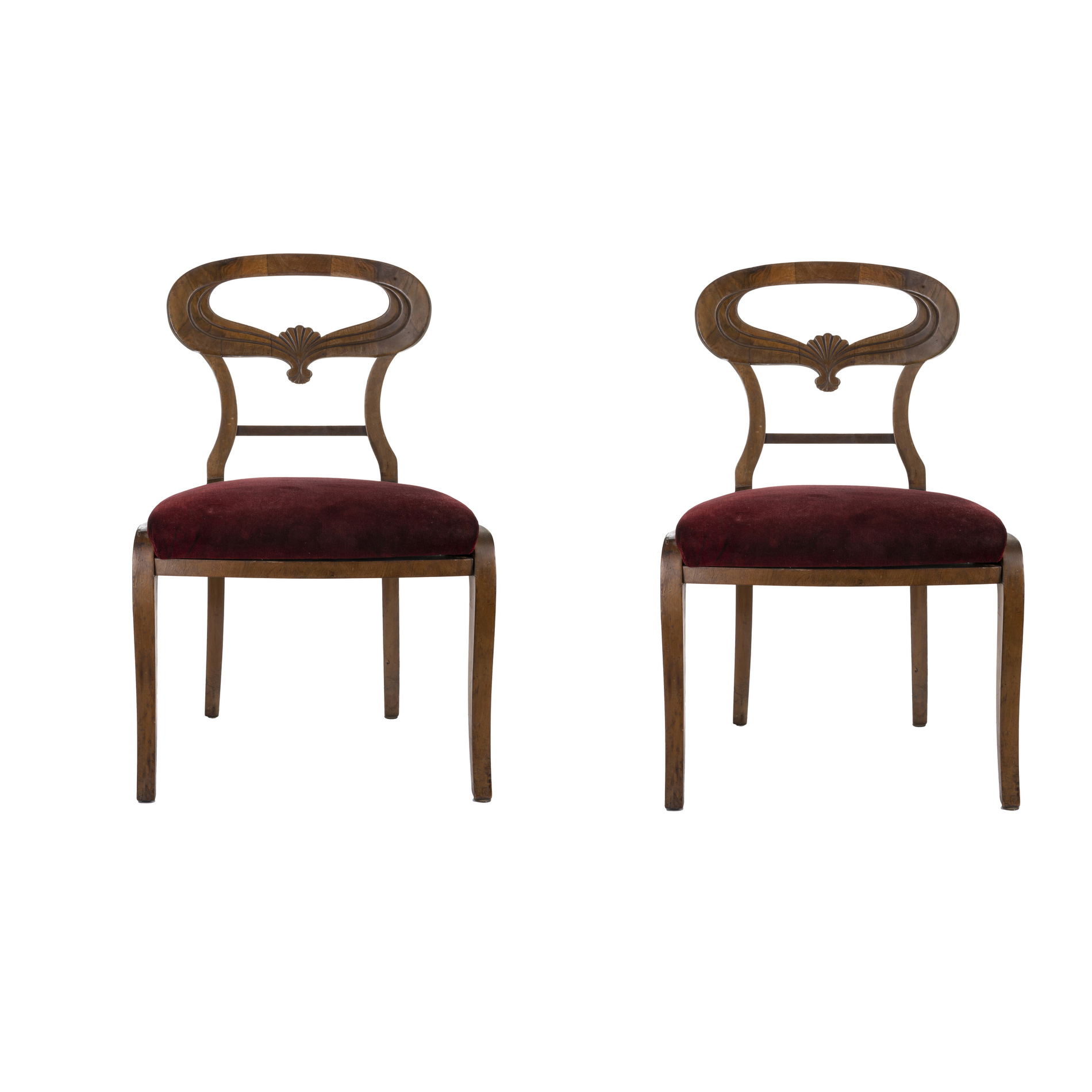 In Biedermeier style, with an openwork-shaped backrest, upholstered seat, and sabre legs.