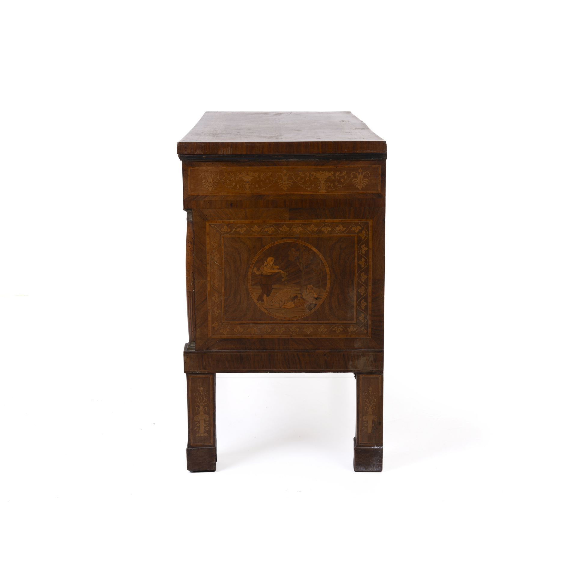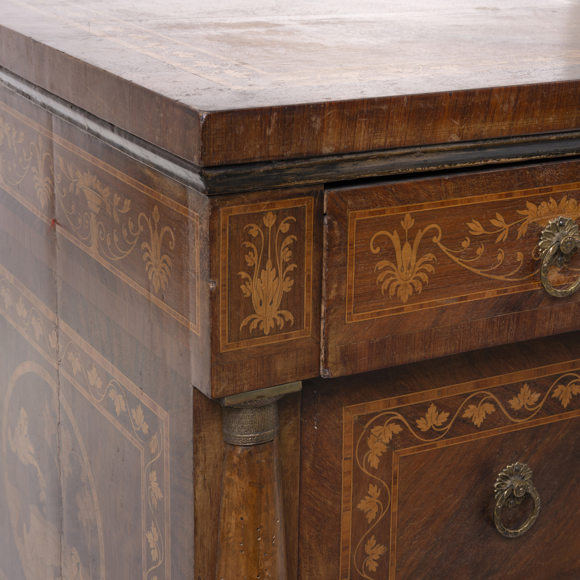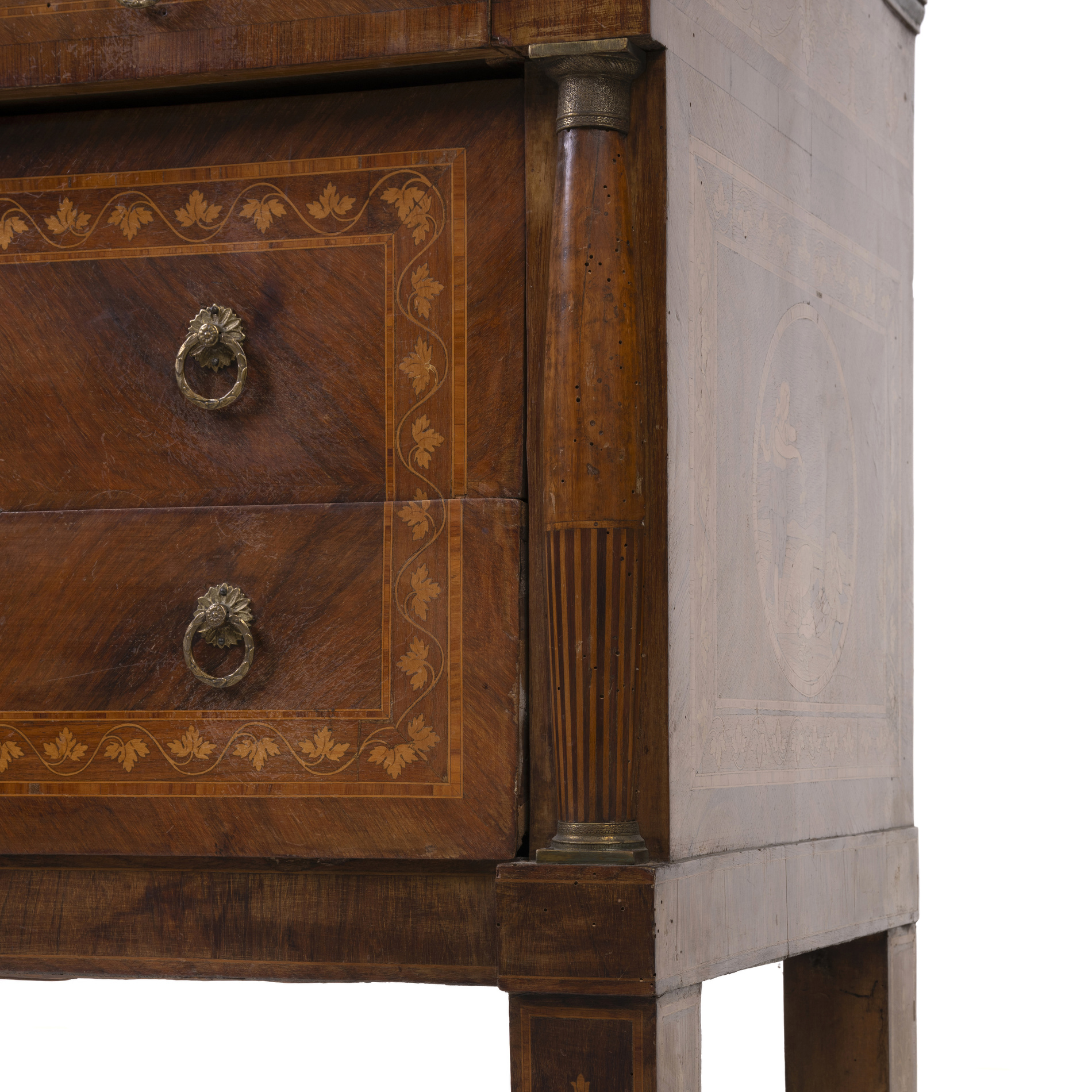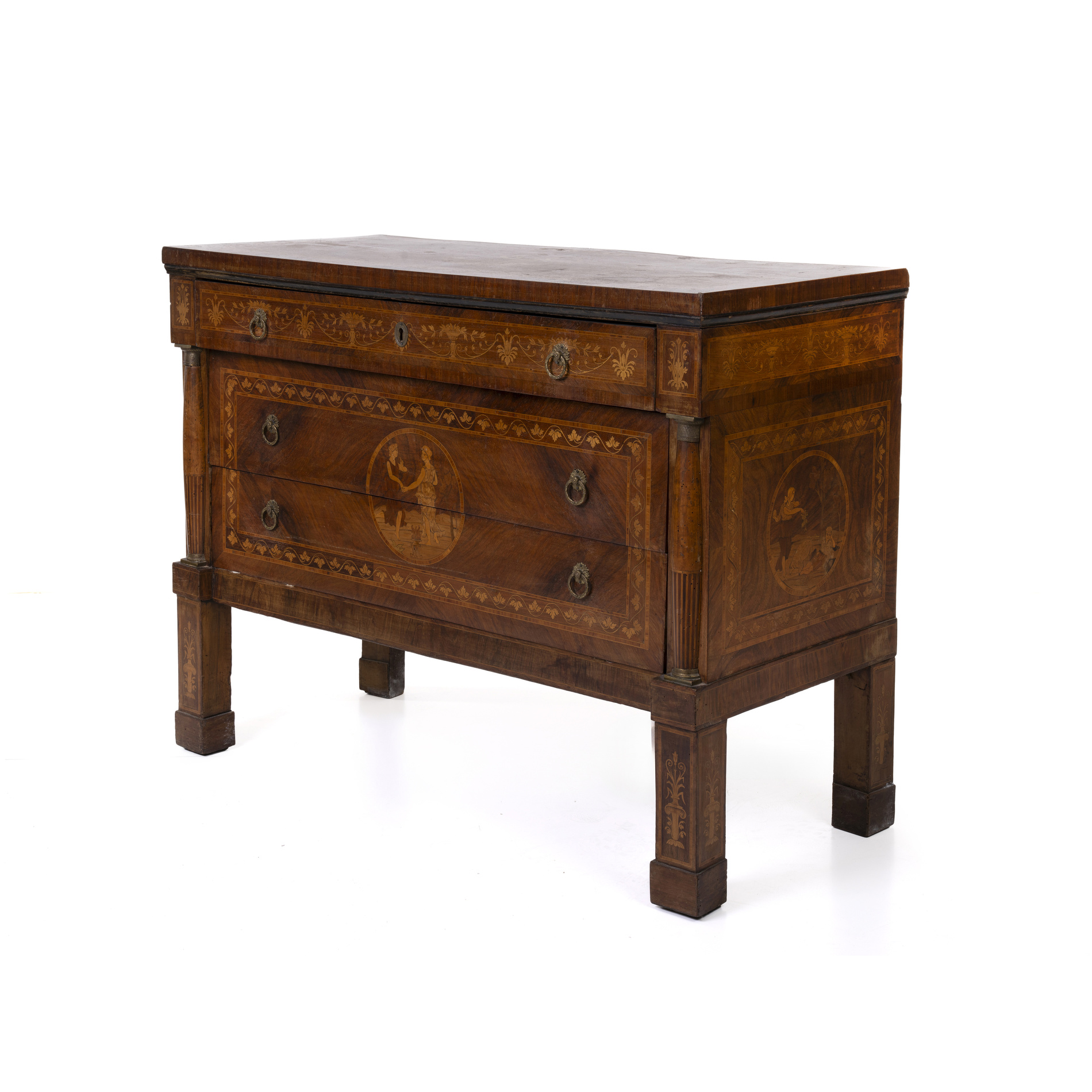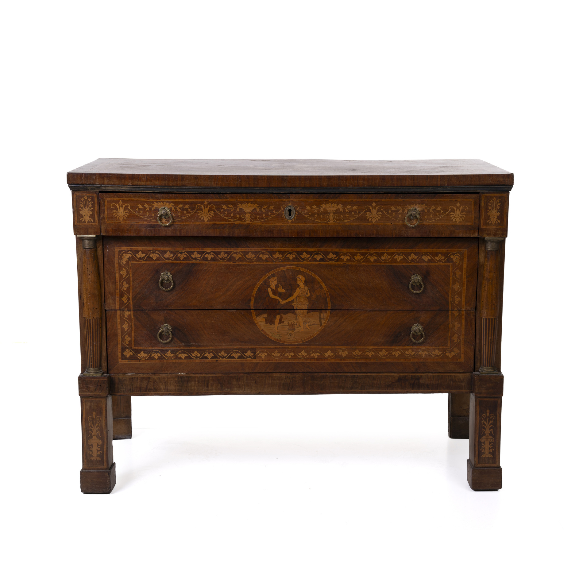 Fronte con tre cassetti fiancheggiati da finte colonne.