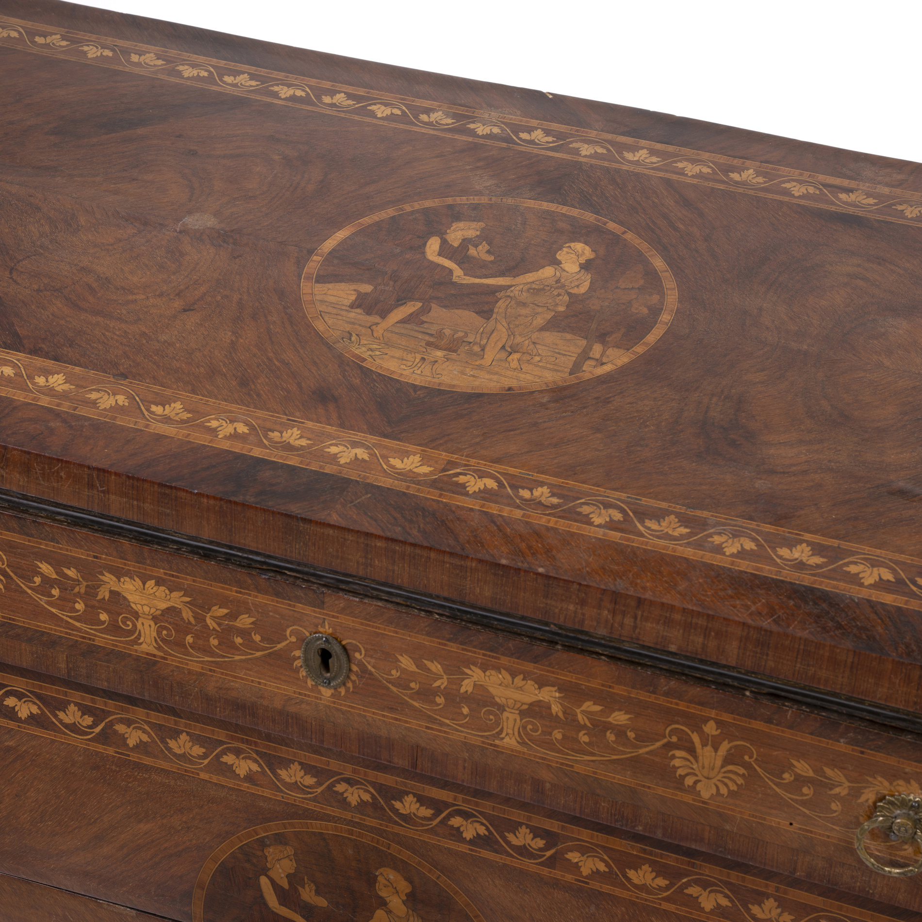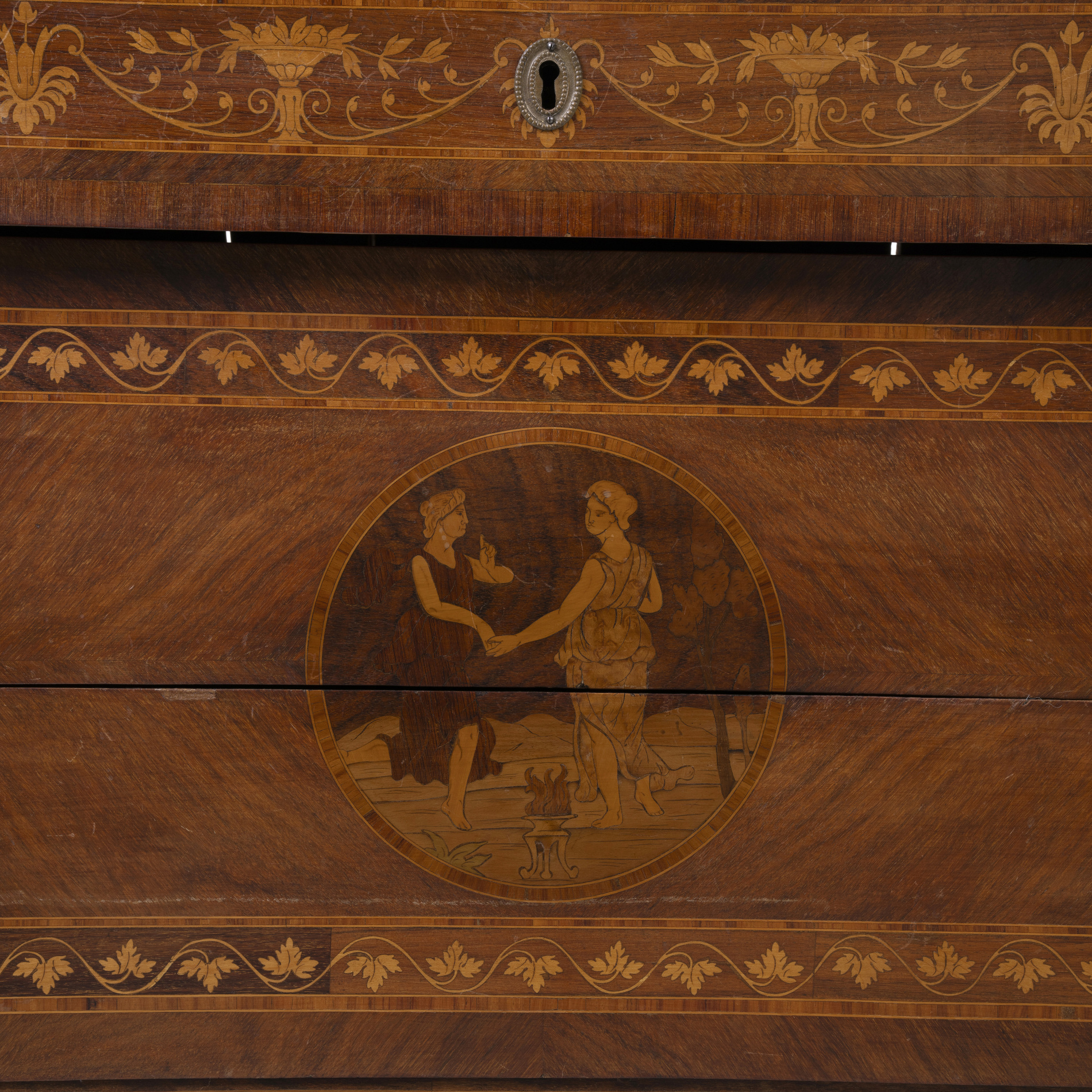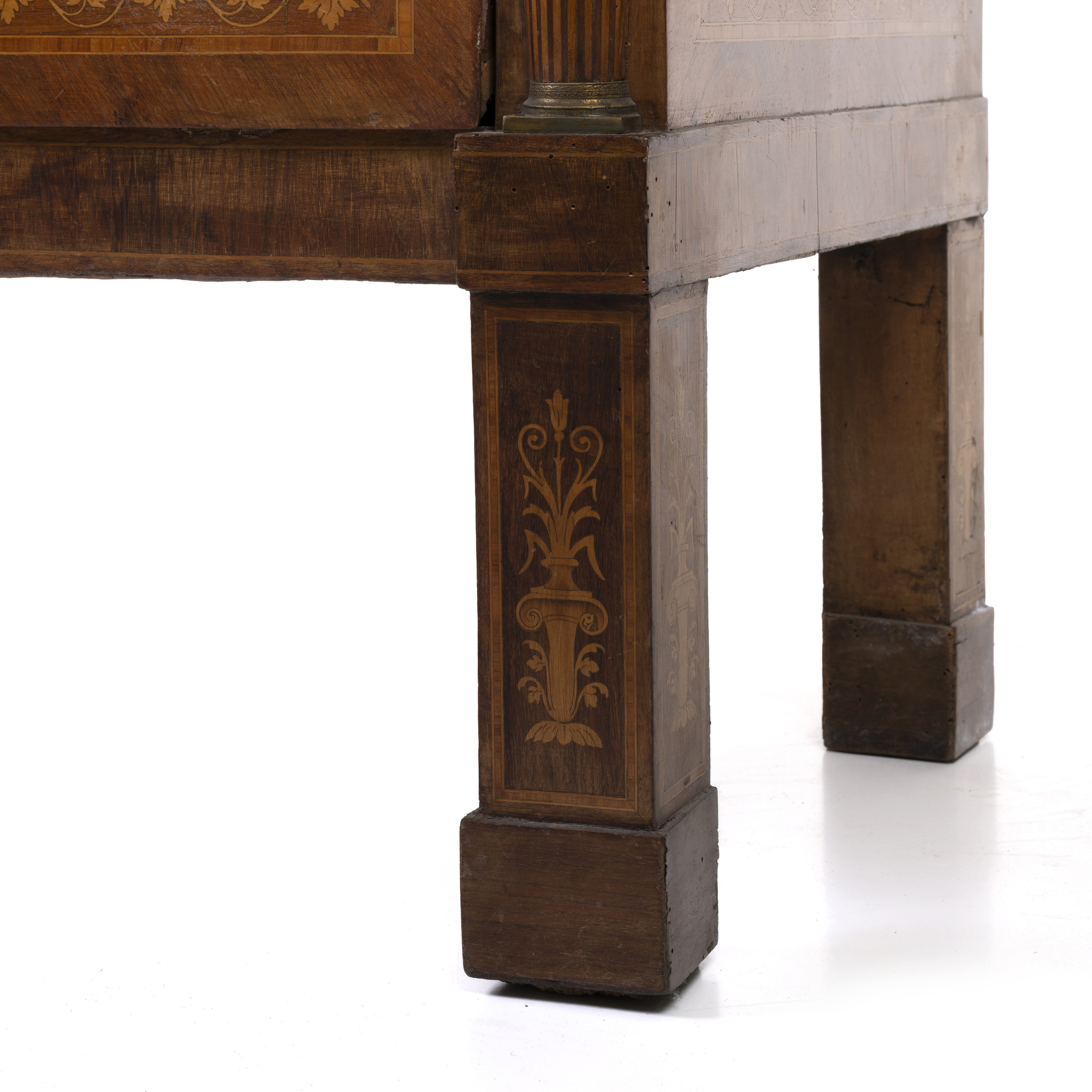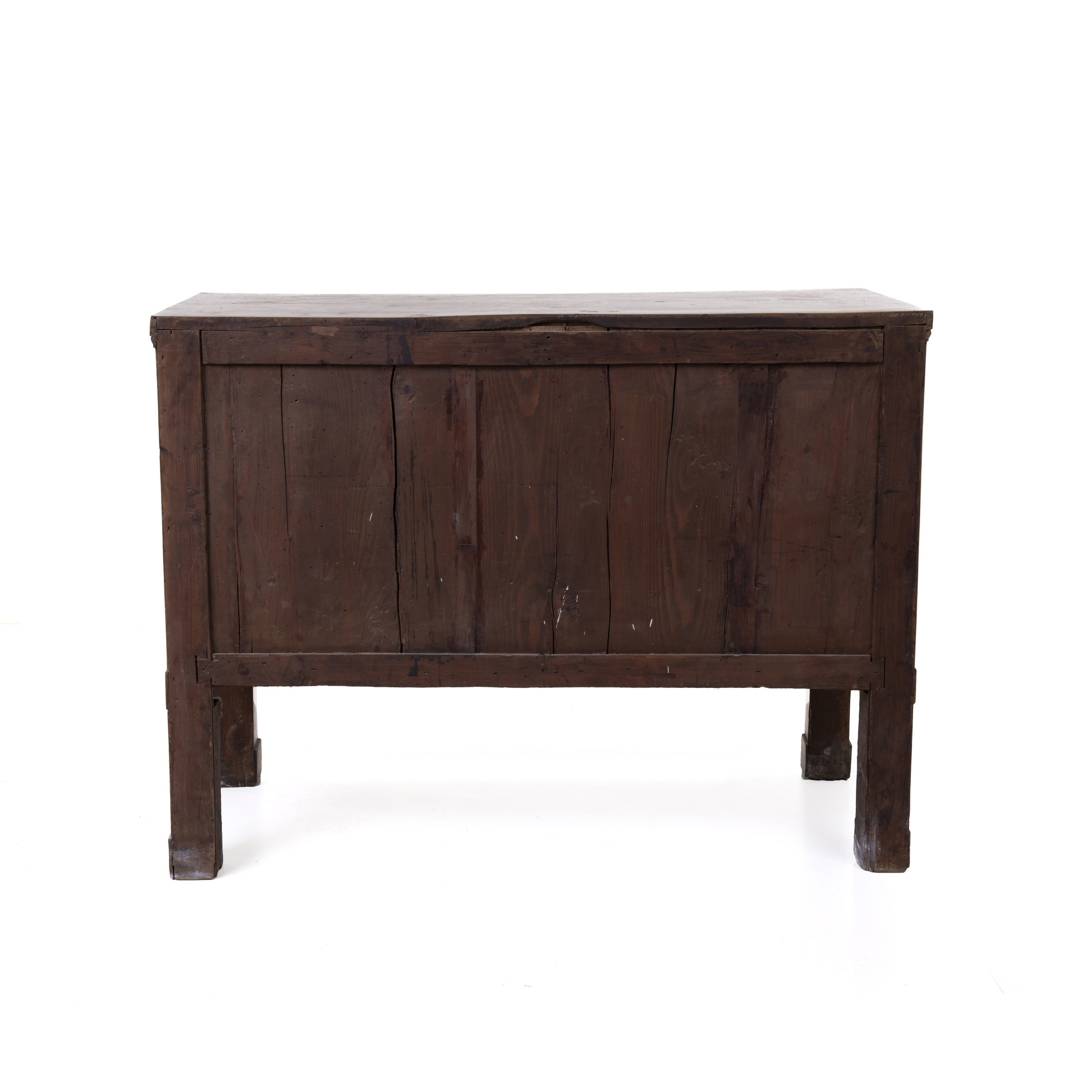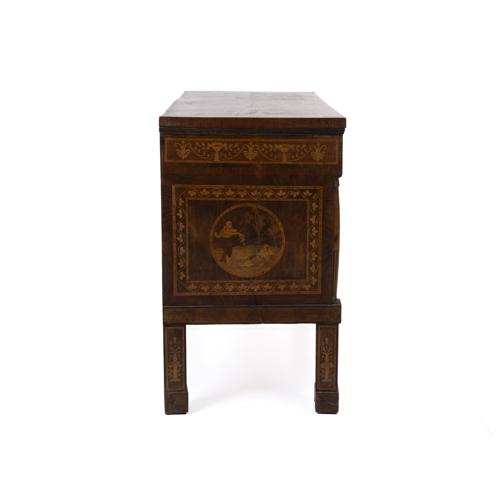 Fronte con tre cassetti fiancheggiati da finte colonne.