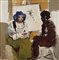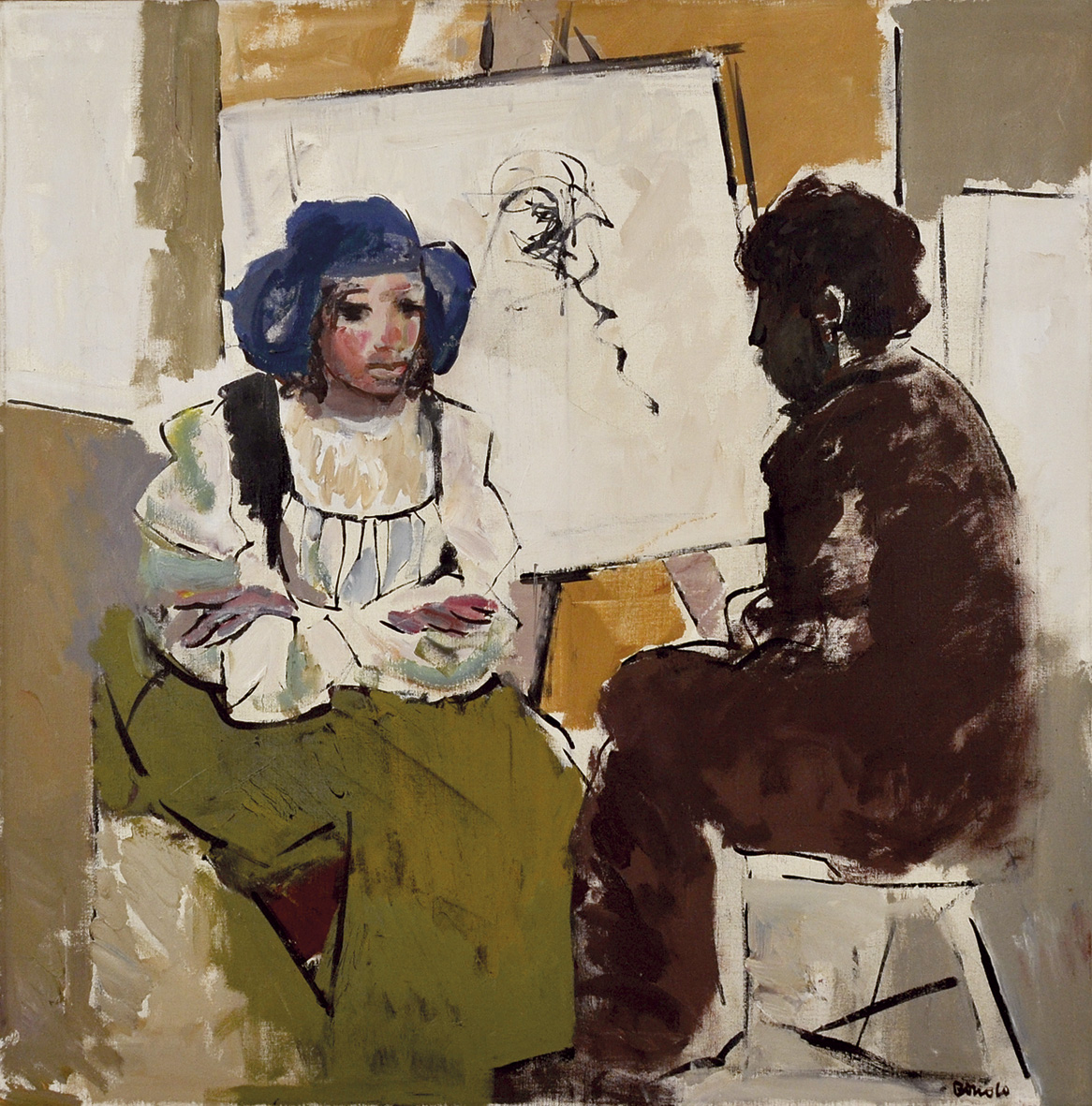 BOSCOLO NATTA Chioggia 1925 - Venezia 2002 Il pittore e la modella 1984 olio su tela 80x80 firma in basso a destra firma e data al retro