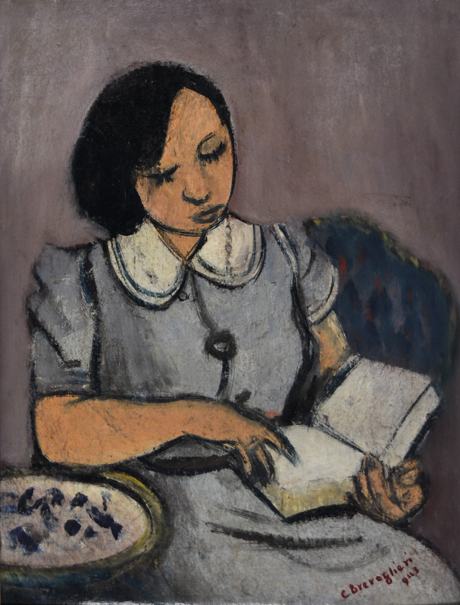 BREVEGLIERI CESARE Milano 1902 - 1948 Ragazza che legge 1943 olio su tela...