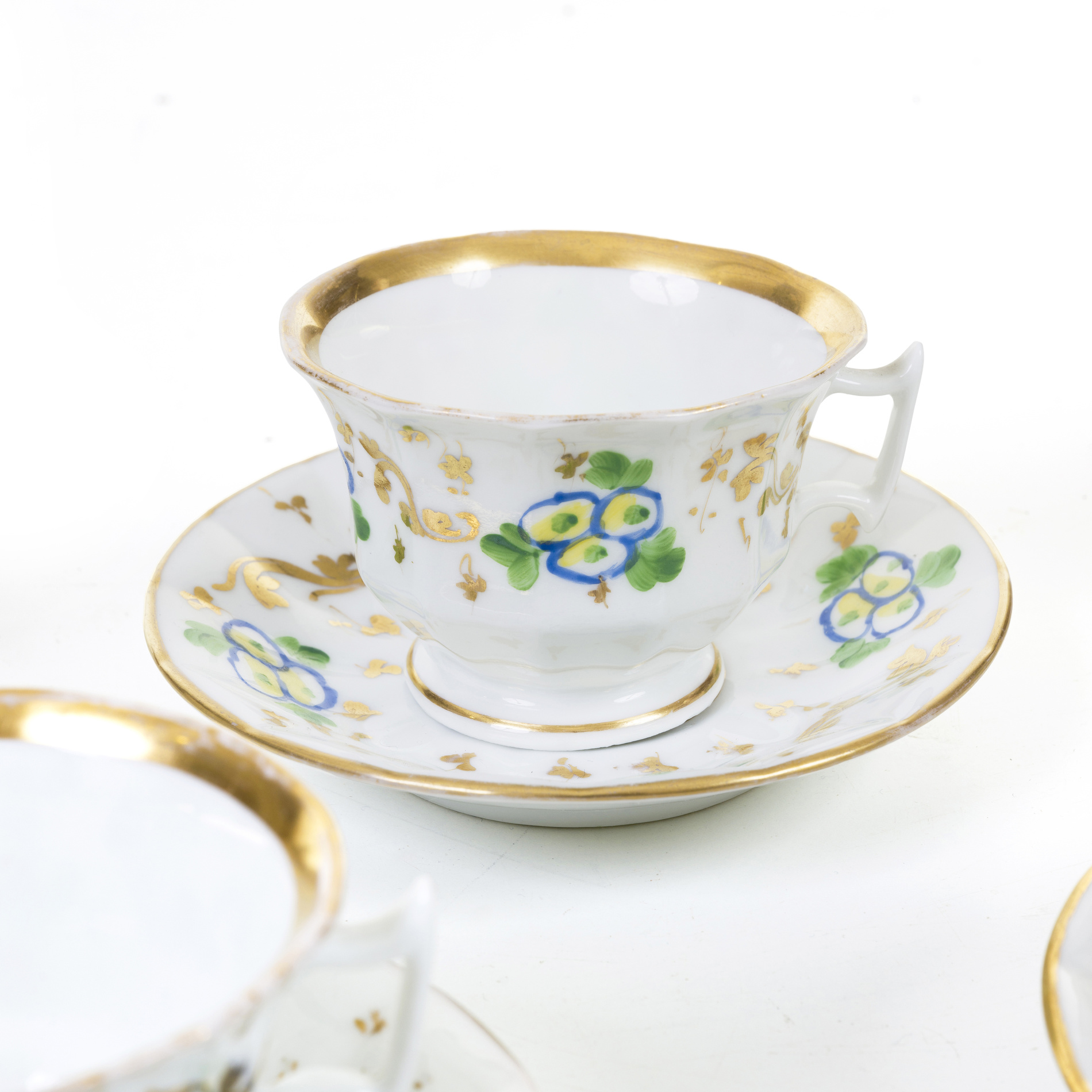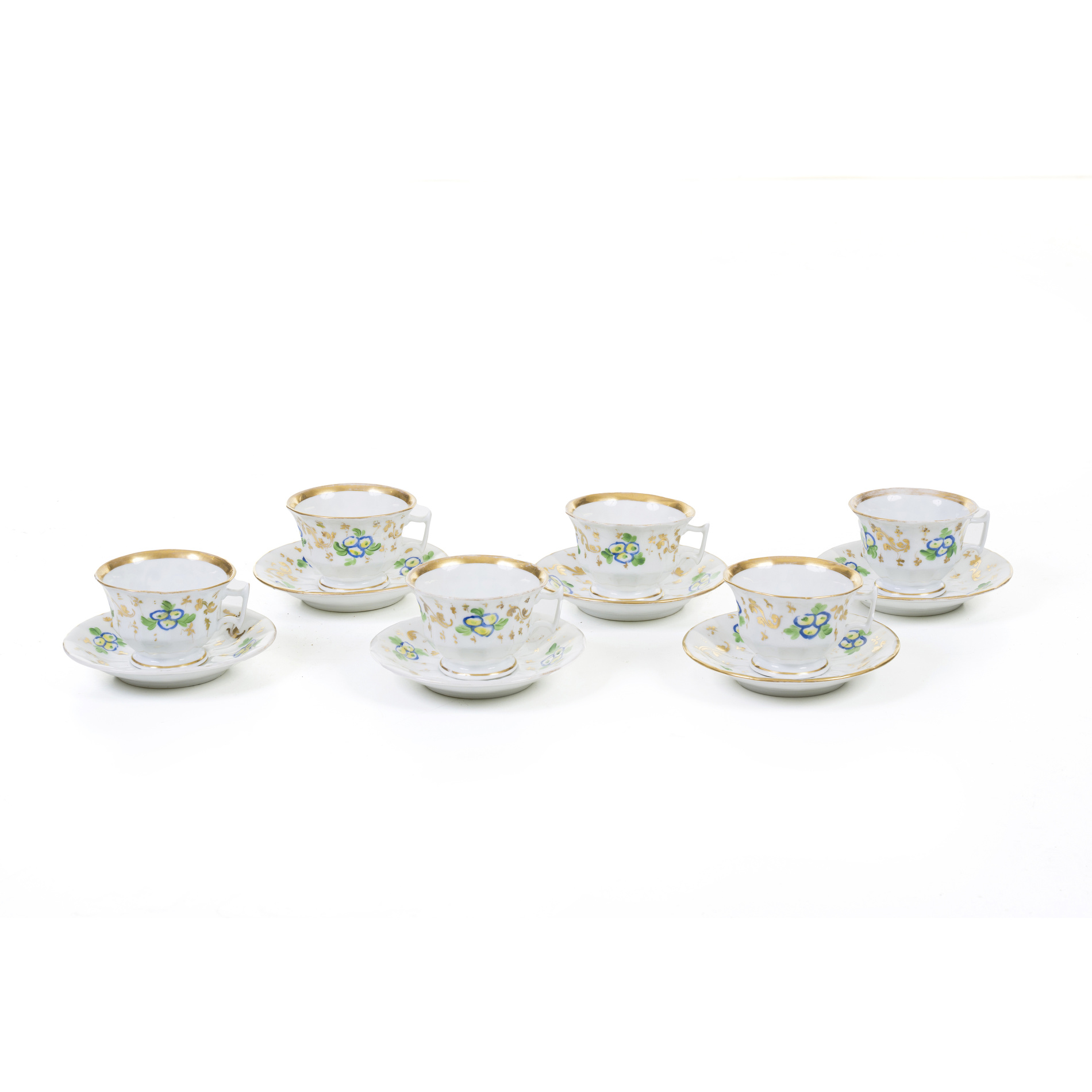Six cups and saucers with floral decoration
