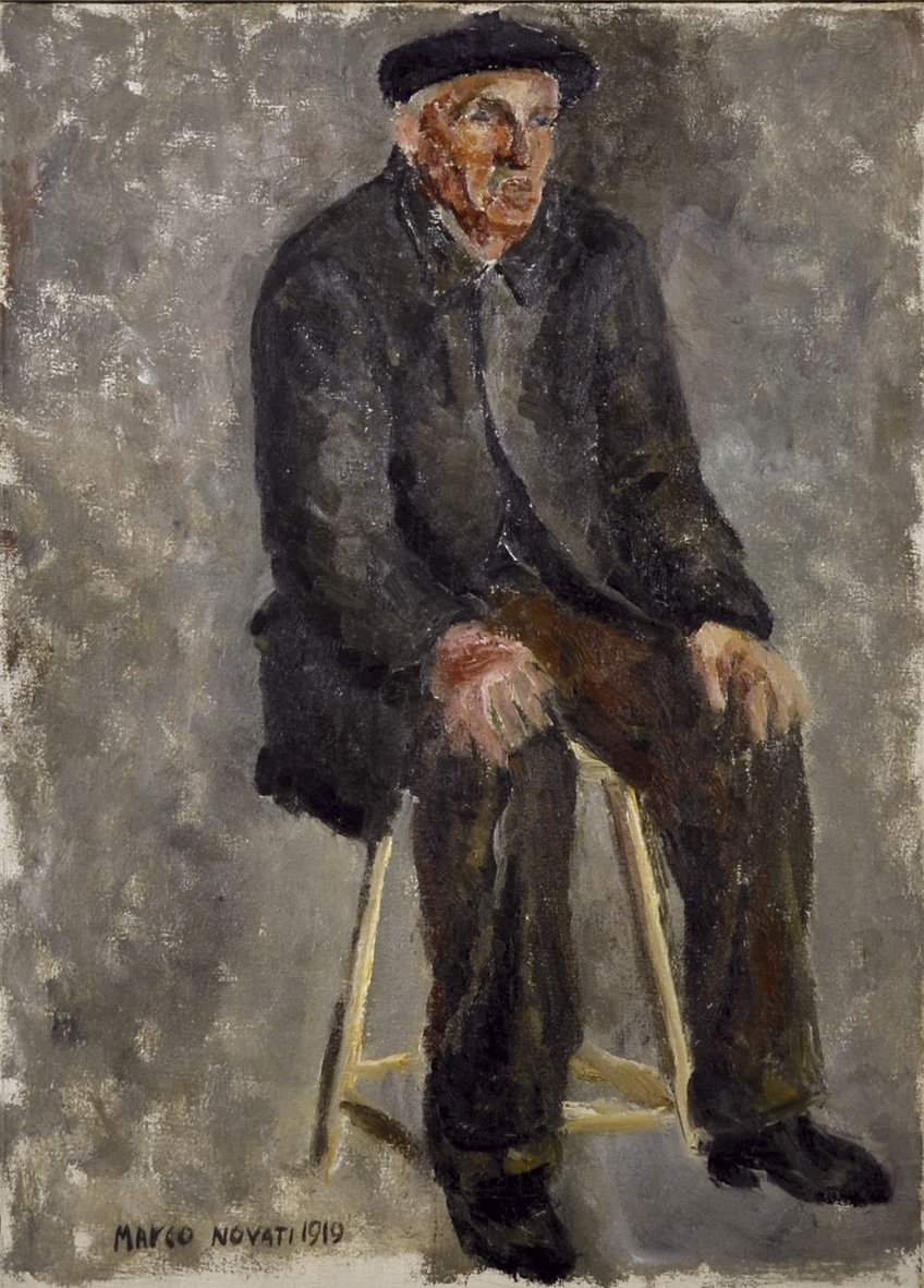NOVATI MARCO Venezia 1895 - 1975 Figura seduta 1919 olio su tela 45,5x32,5 firma e data in basso a sinistra autentica di Luciano Ravagnan Venezia su foto